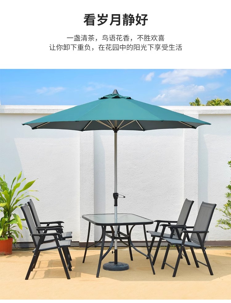 • [테이블, 의자, 우산 조합] 야두 의자 4개 + 탄소강 사각 70CM 테이블 + 싱글 탑 센터 컬럼 우산 2.7m개