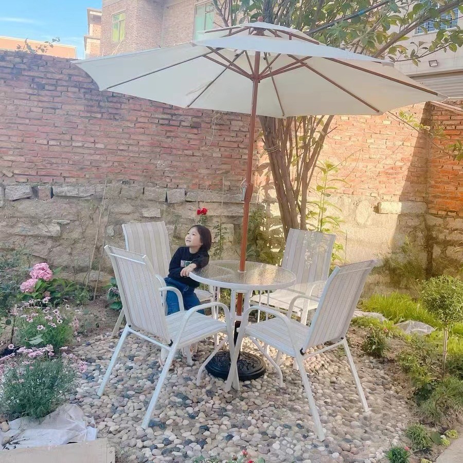 • [테이블, 의자, 우산 조합] 둥근 등받이 의자 4개 + 70CM 이중 링 원형 테이블 + 이중 상판 알루미늄 우산 2.7m개