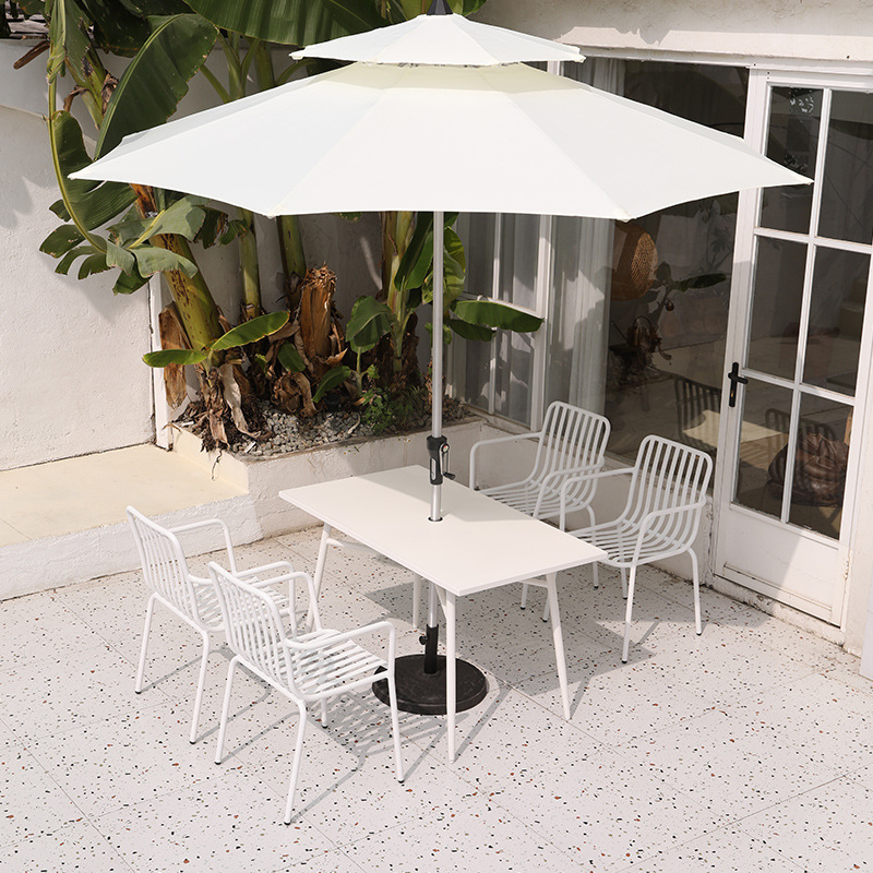• [테이블, 의자, 우산 조합] 오시 의자 4개 + 북유럽 스타일 직사각형 테이블 1개 + 이중 지붕 알루미늄 우산 2개
