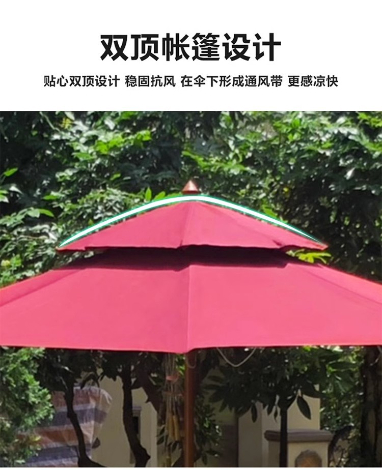 • [테이블, 의자 및 우산 조합] 이중 상단 모조 나무 우산 2.7m개 + 흰색 테이블 및 의자 우산 80개 [다양한 색상 가능]