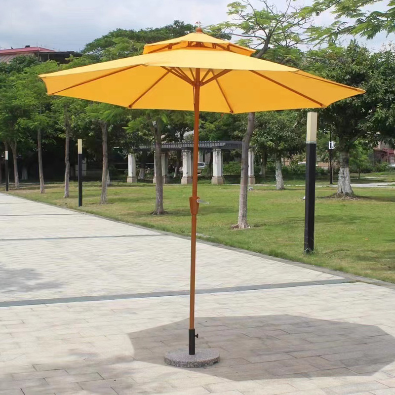 • 직경 2.7m 이중 상단 모조 나무 우산 노란색 대리석 베이스