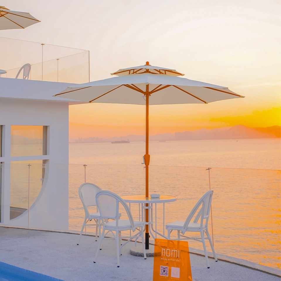 • [테이블, 의자, 우산 조합] 오시 의자 2개 + 원형 북유럽 스타일 테이블 70개 + 이중 지붕 알루미늄 우산 2.7m개