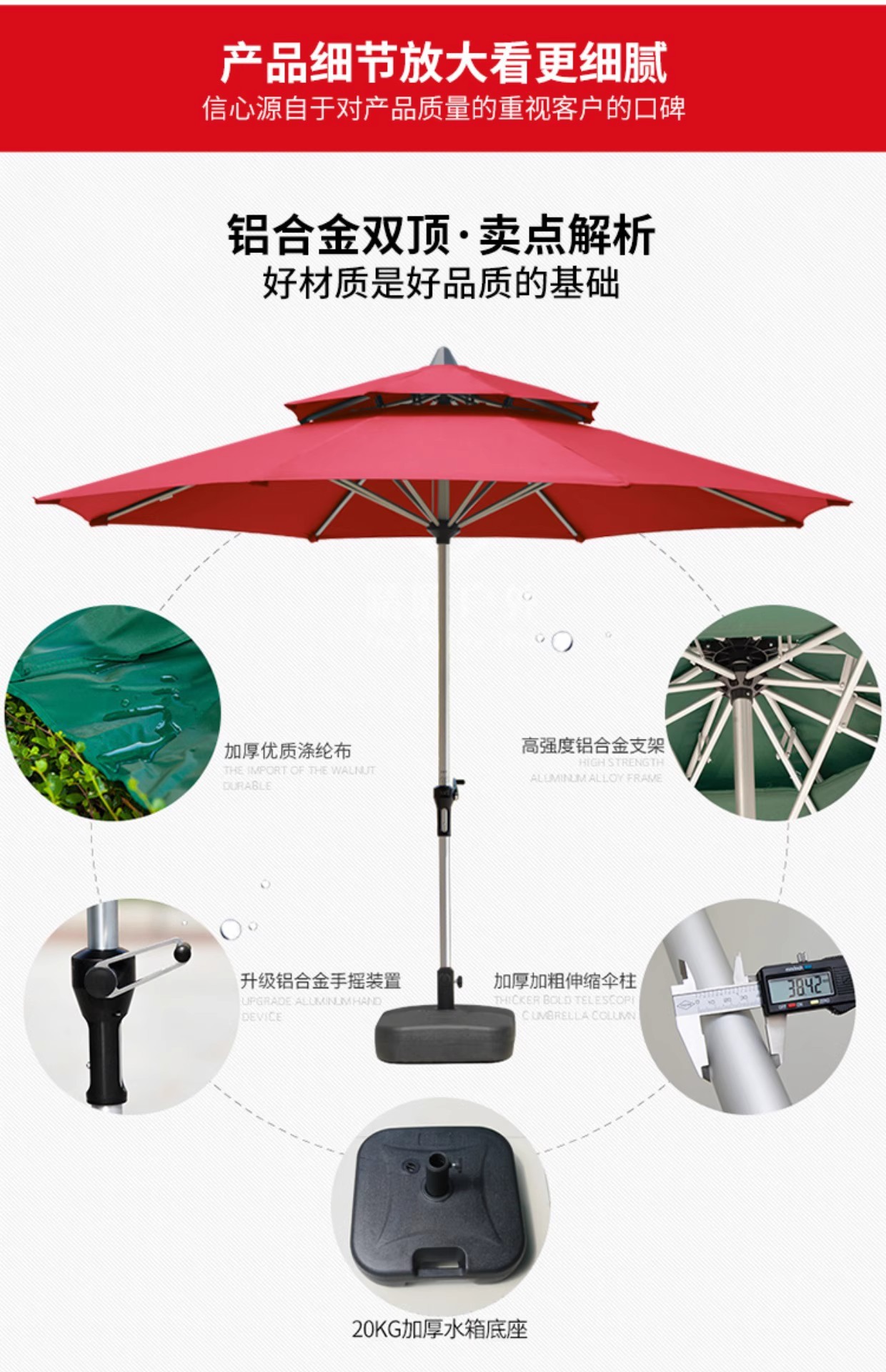 • 다양한 색상으로 제공되는 직경 2.7m 알루미늄 합금 이중 상단 센터 컬럼 우산