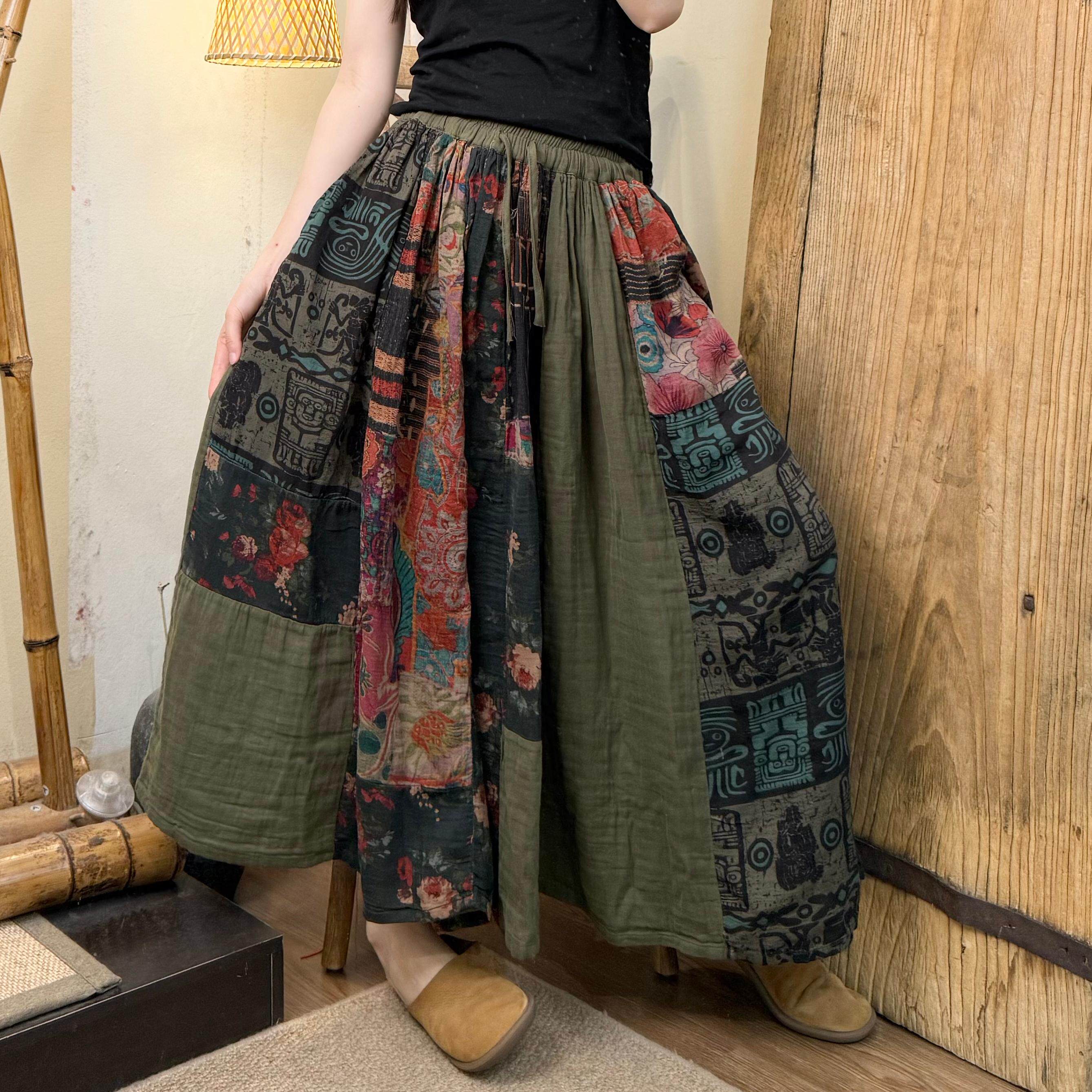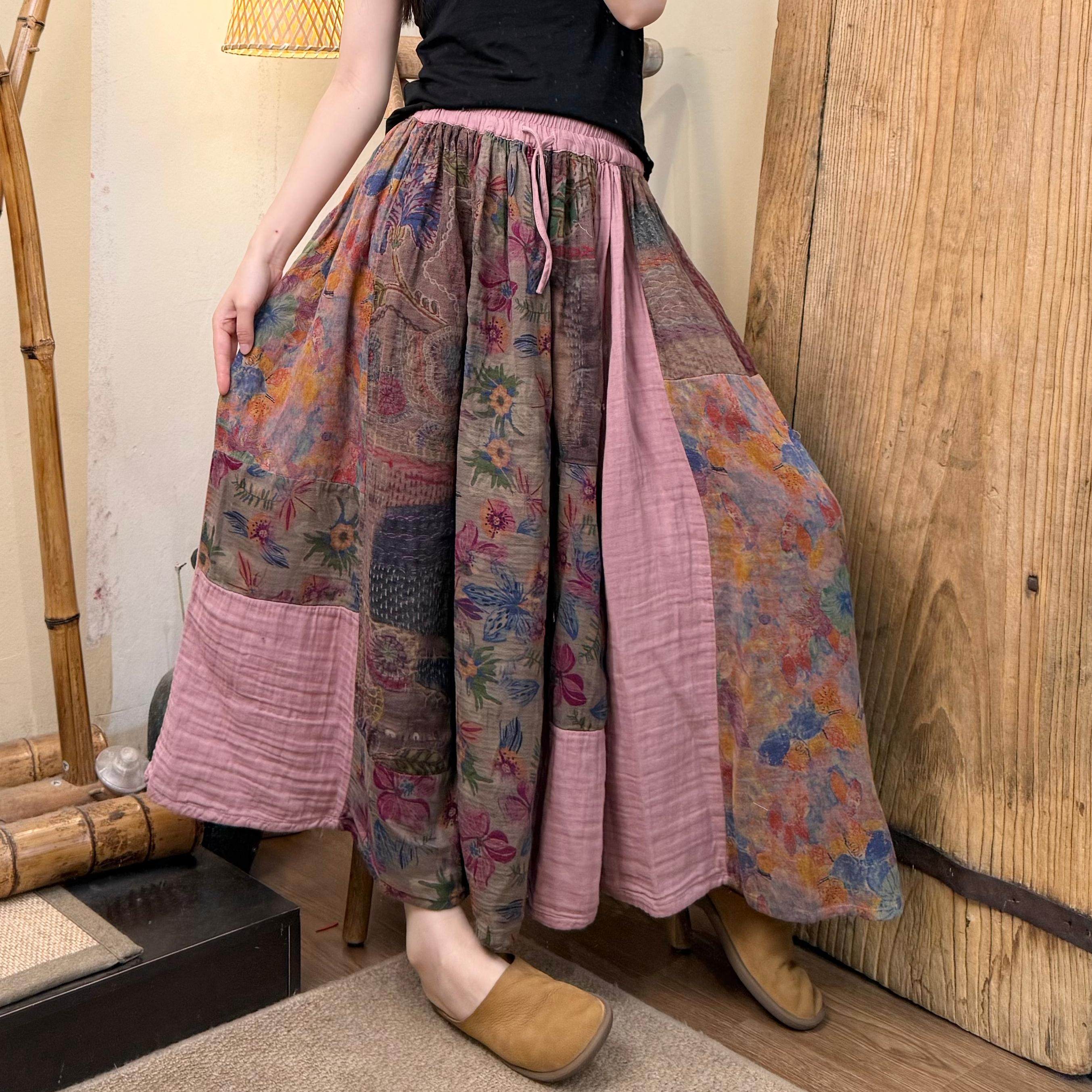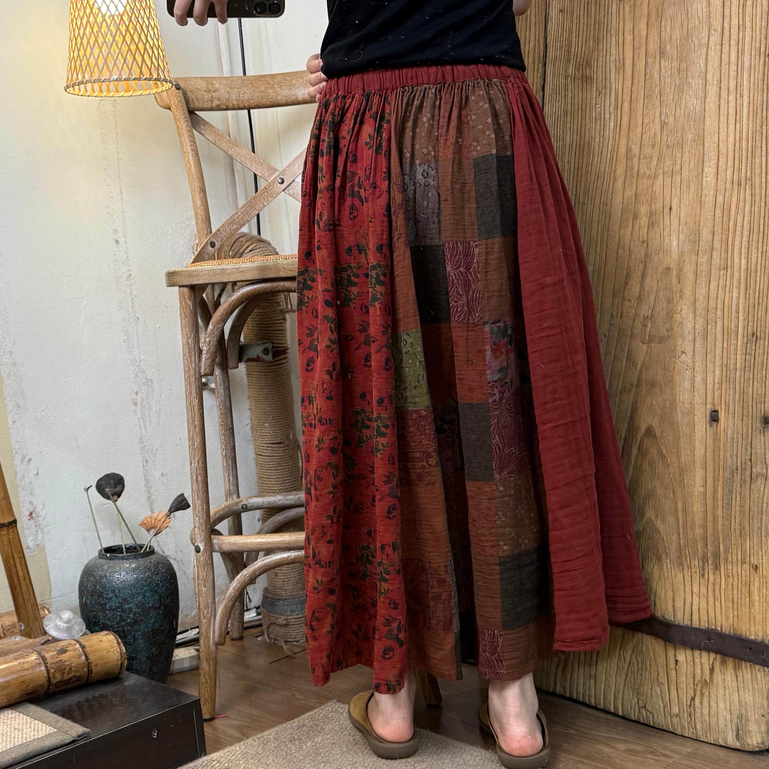 2025 년 여름 새로운 빈티지 캐주얼 올 매치 코튼 원사 스티칭 단색 스트레스 허리 스커트 여성용스토어 가기