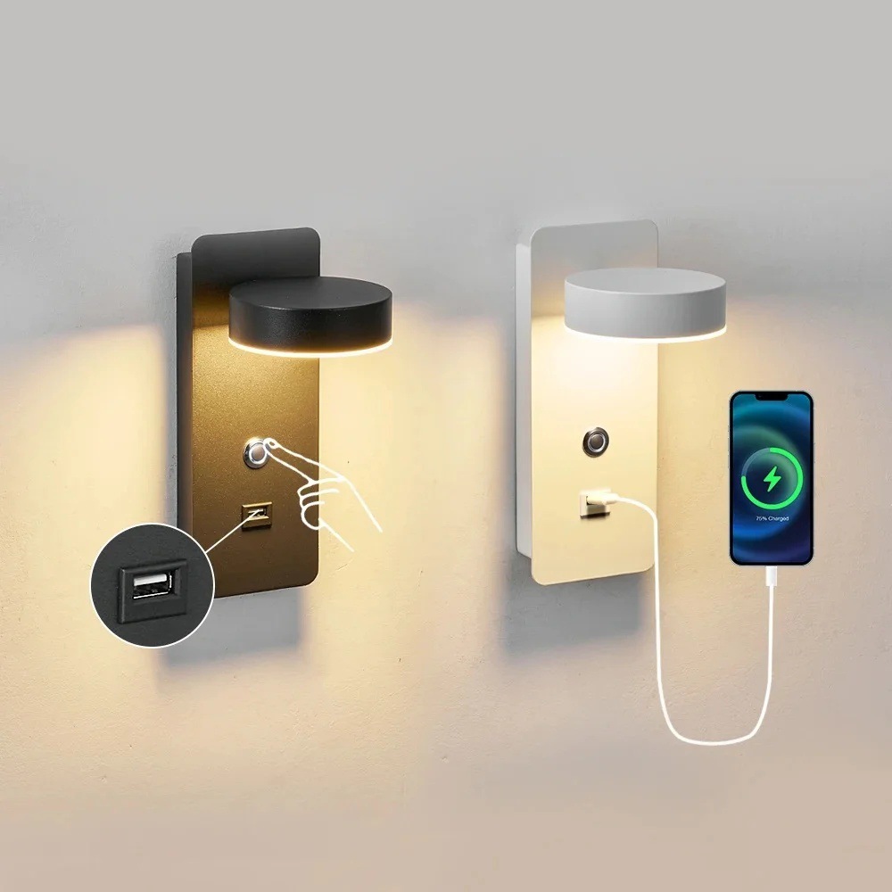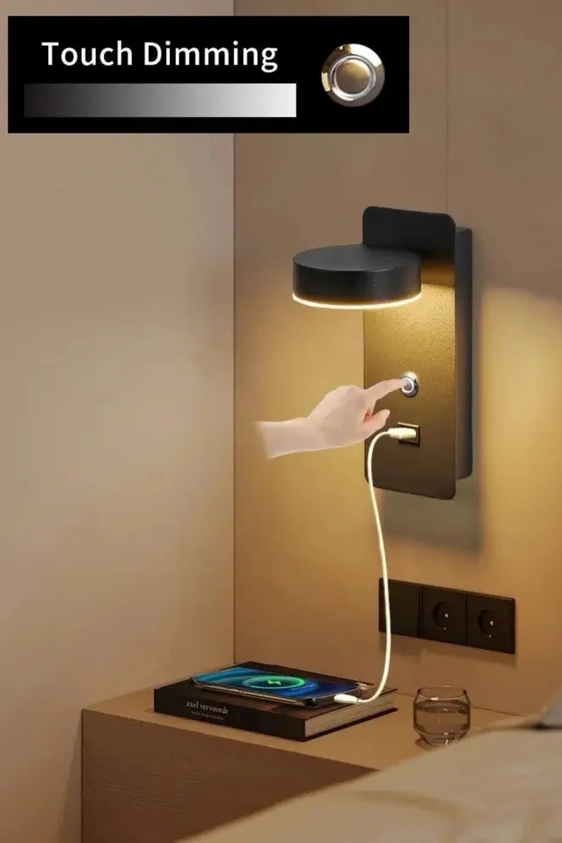 USB 충전식 벽 램프, 터치 디밍 기능, 가정용 장식 LED 호텔 및 B&B 침대 옆 램프가 있는 국경을 넘는 벽 램프스토어 가기