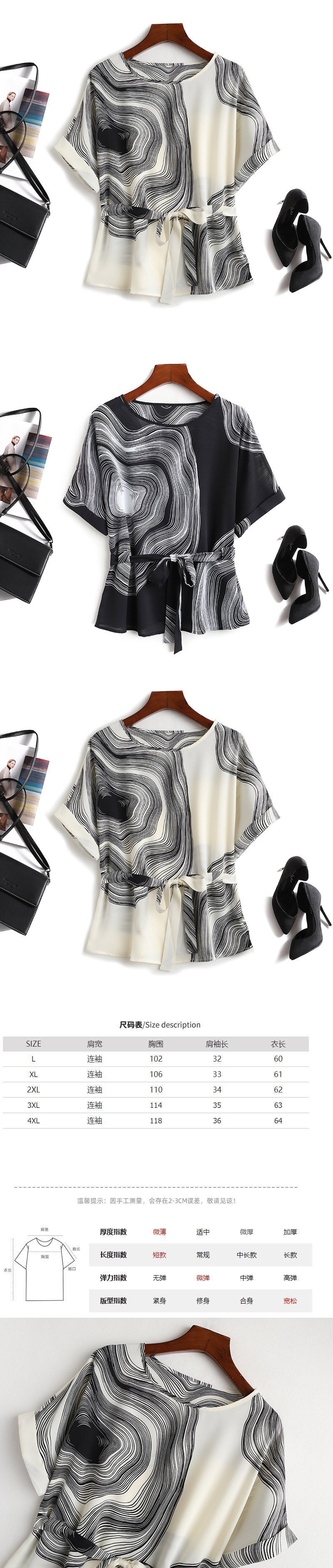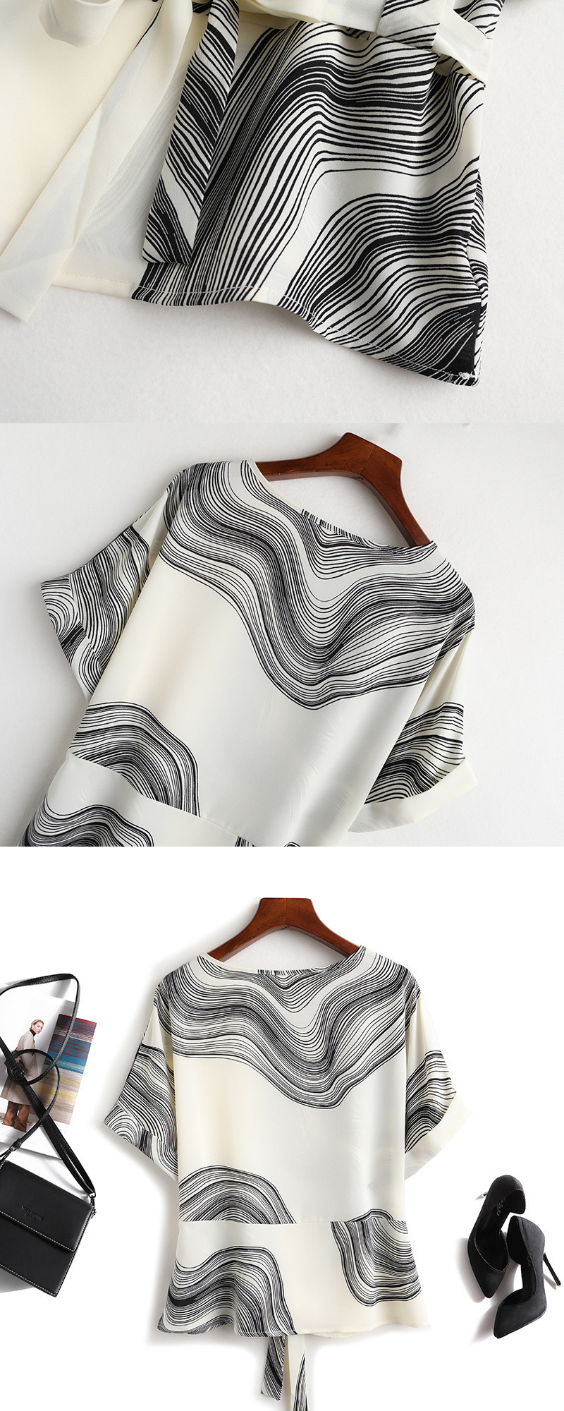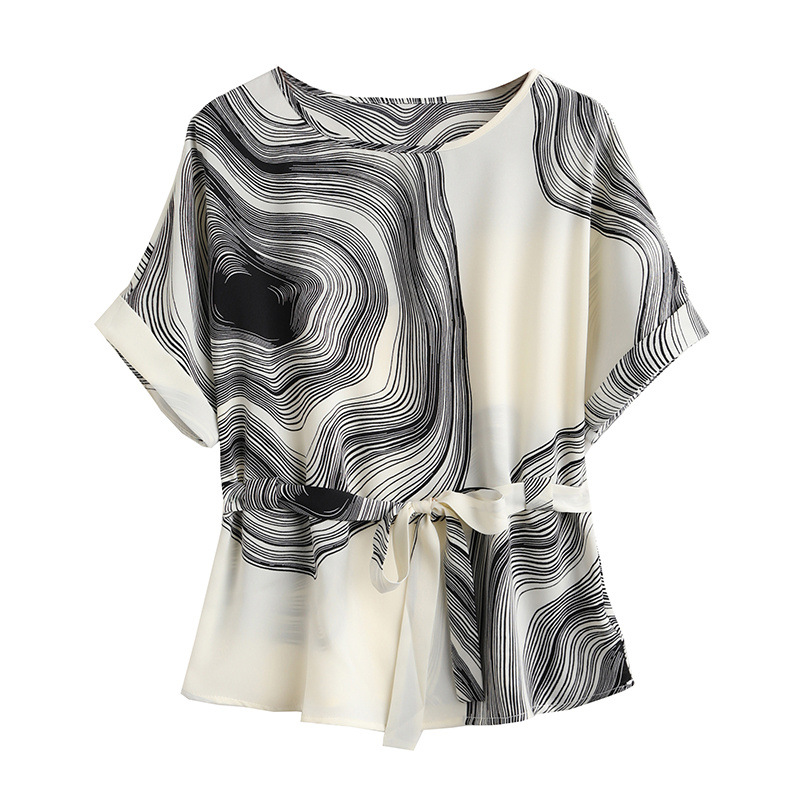 바람이 부는! 1초만에 여름! 레트로 추상 프린트 레이스업 허리 반팔 쉬폰 셔츠 여성용 티셔츠 탑스토어 가기
