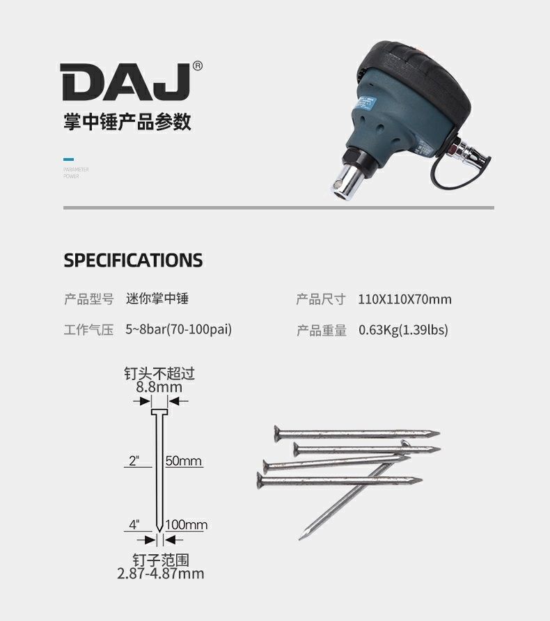 DAJ 목공 공압 팜 해머 공압 해머 공압 네일 해머 강철 네일 해머 라운드 네일 해머