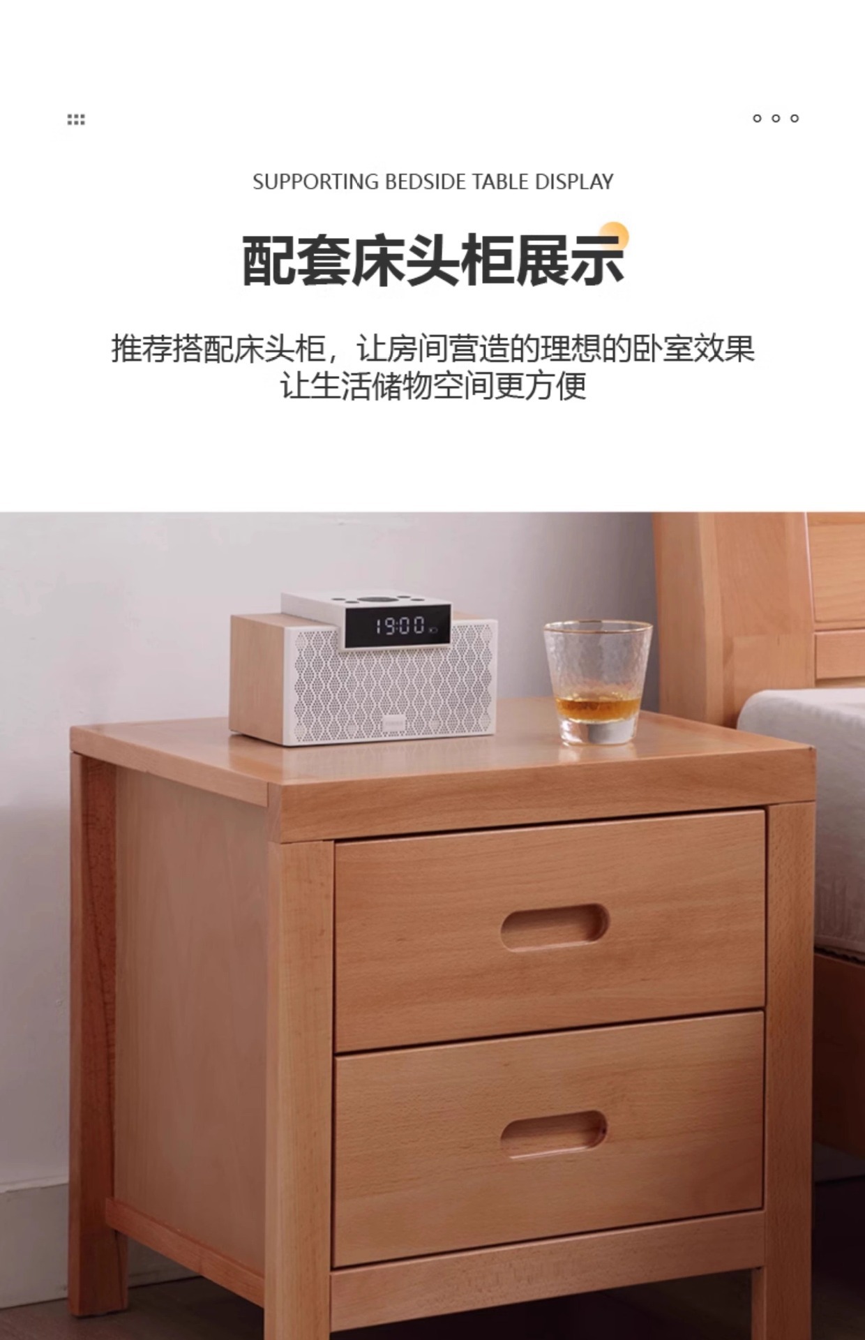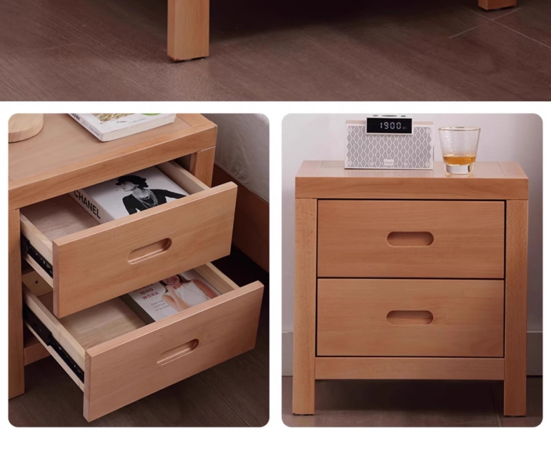 • 너도밤나무 침대 + 침대 옆 테이블 2개