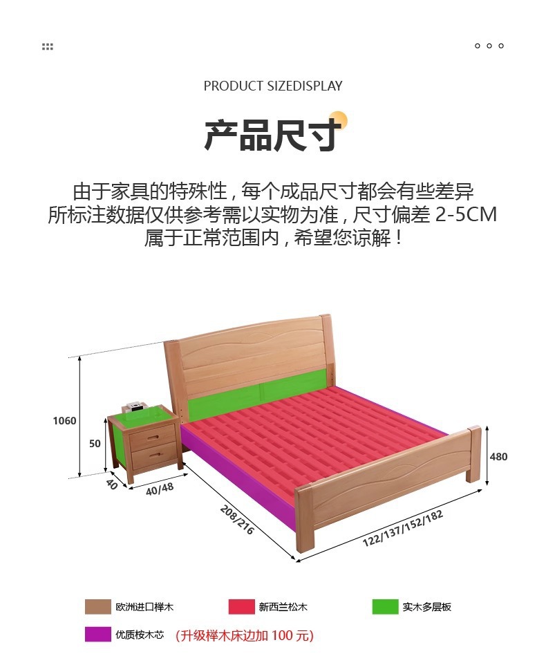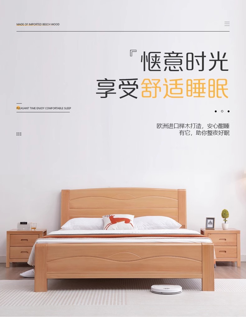 북유럽 원목 침대 너도밤나무 침대 마스터 침실 모던 심플 1.5m 1.8m 더블 침대 1.2m 소형 싱글 침대스토어 가기
