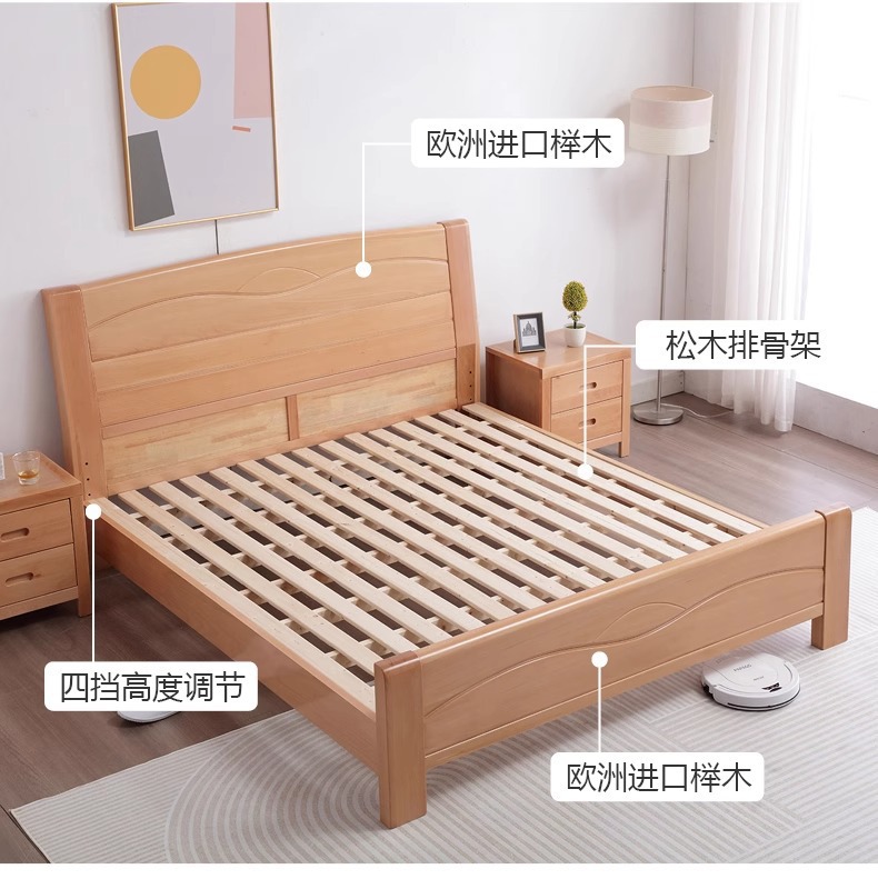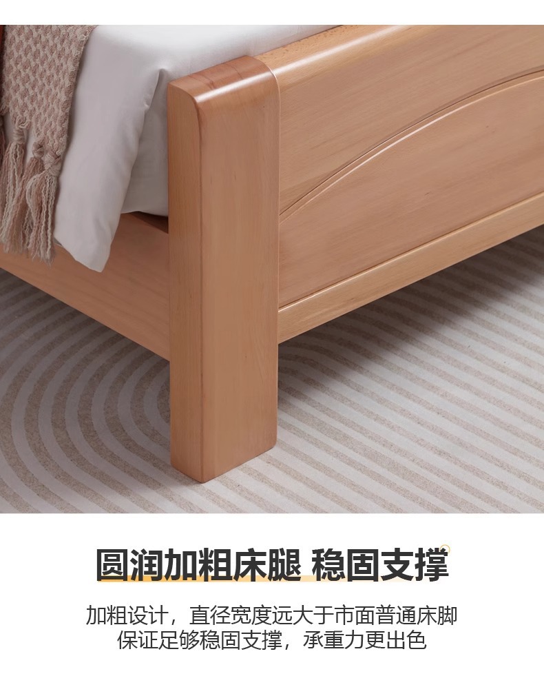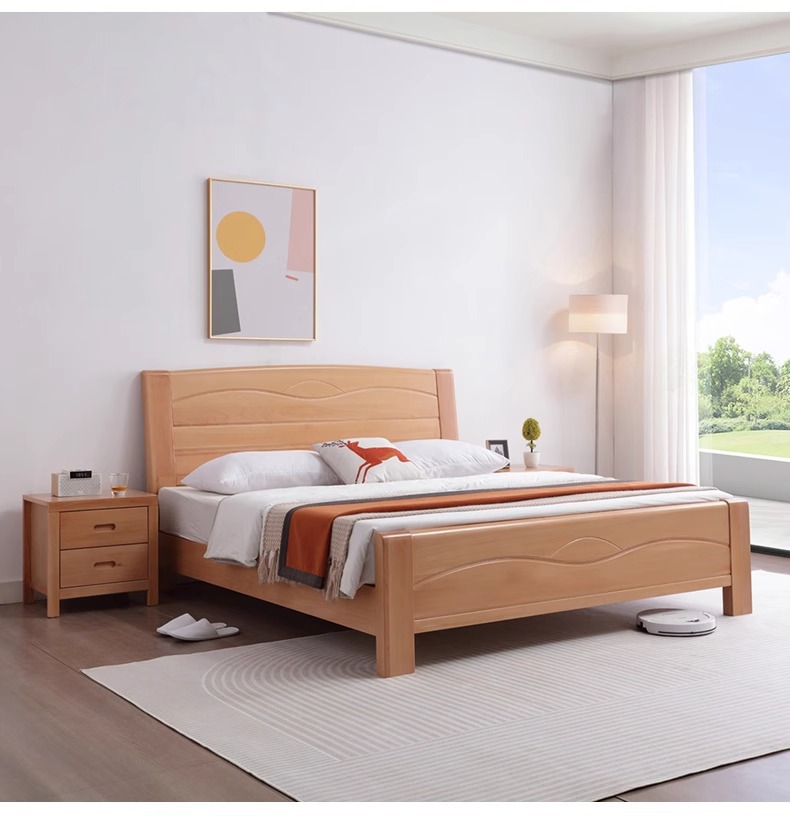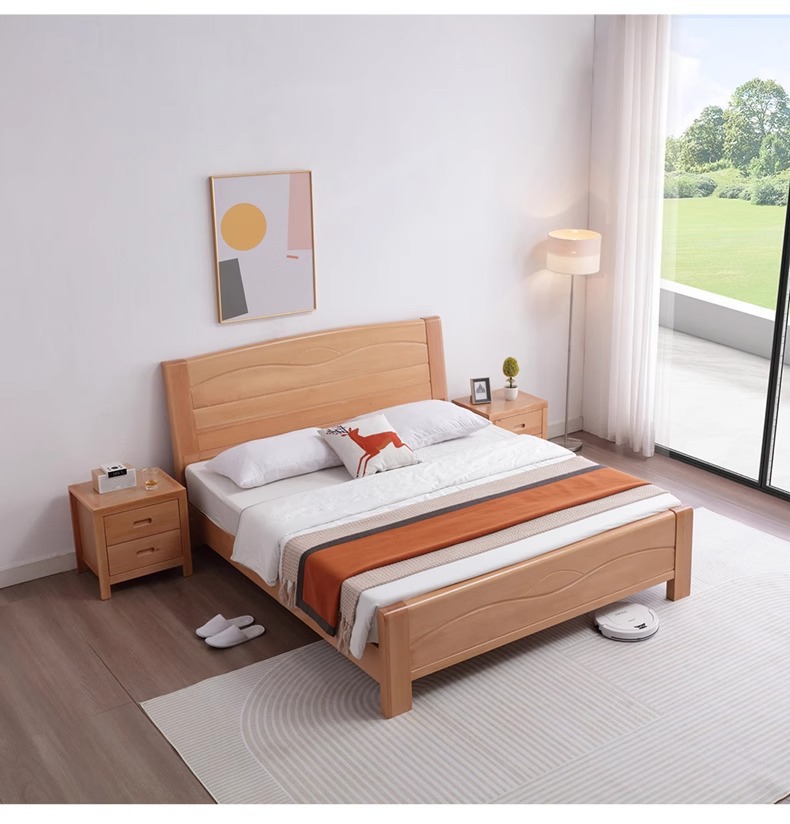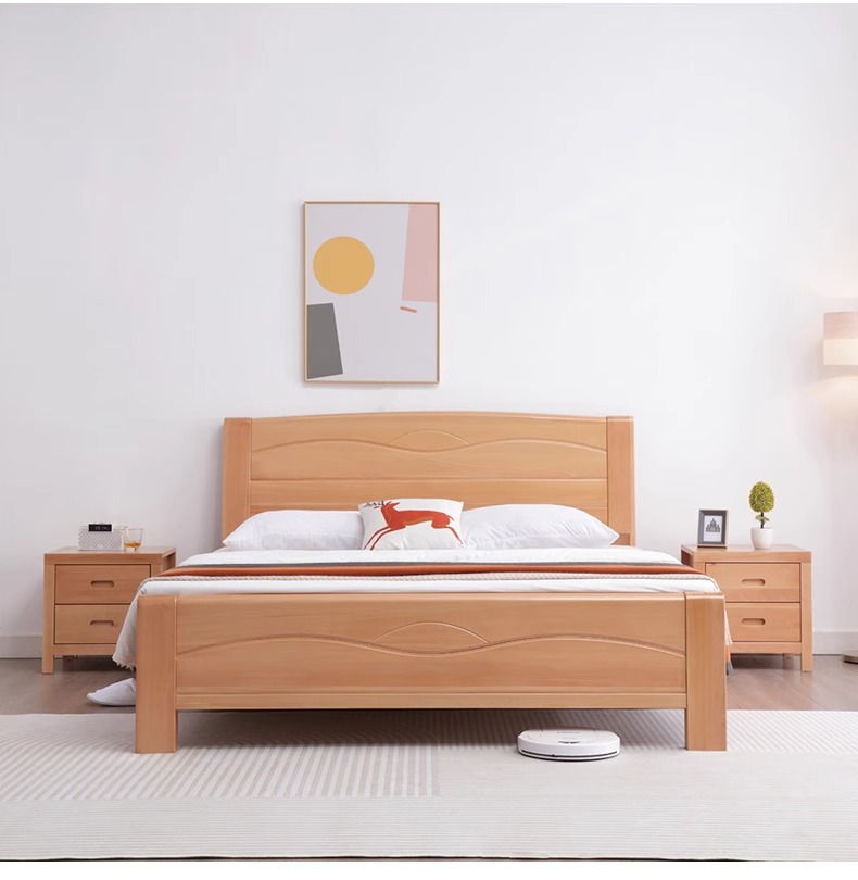 북유럽 원목 침대 너도밤나무 침대 마스터 침실 모던 심플 1.5m 1.8m 더블 침대 1.2m 소형 싱글 침대