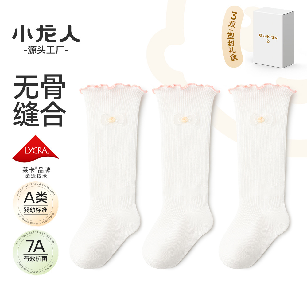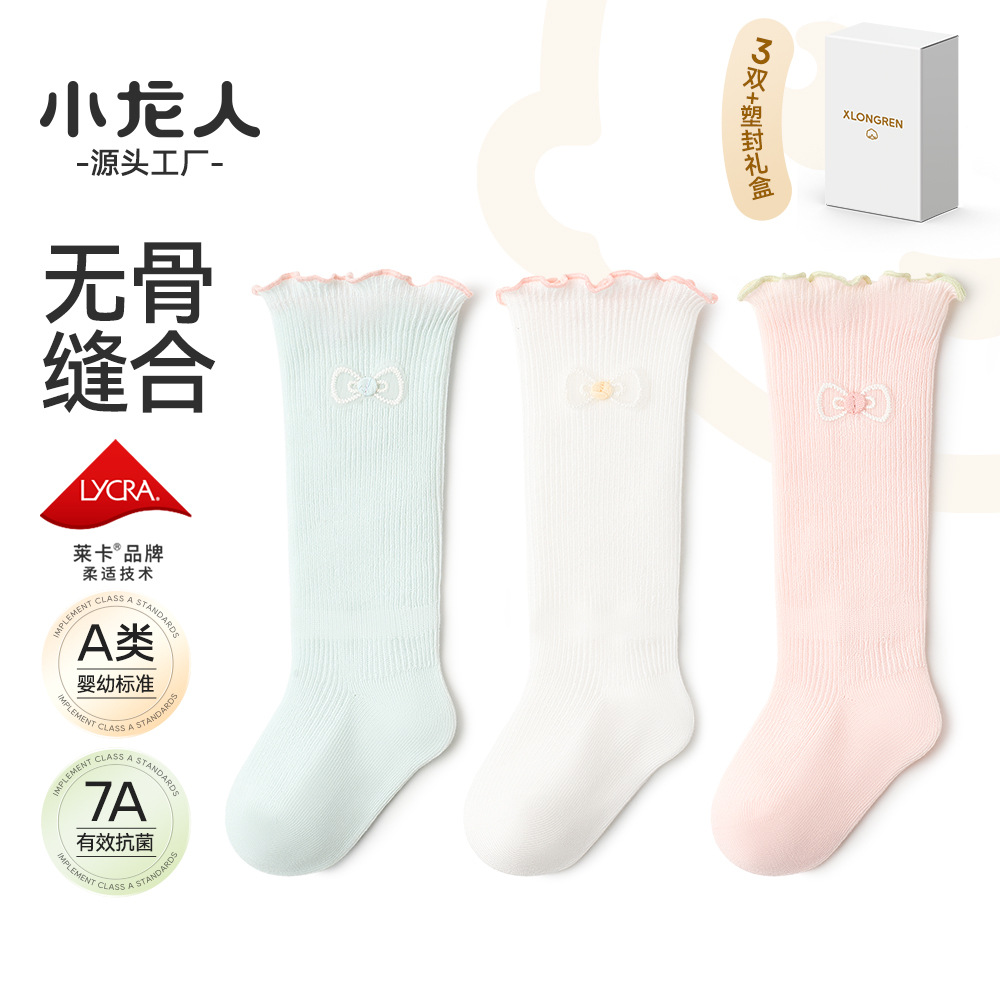 Xiaolongren 뼈없는 유아 양말 아기 봄과 여름 얇은면 아기 소녀 긴 레이스면 양말 신생아