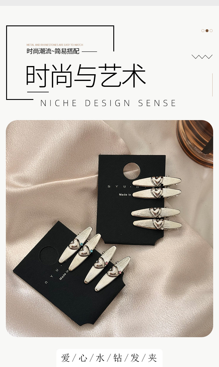 한국 하이 엔드 느낌 새로운 금속 차가운 바람 틈새 기하학적 브러시 러브 라인 스톤 2025 여름 올 매치 헤어핀스토어 가기