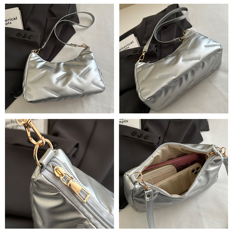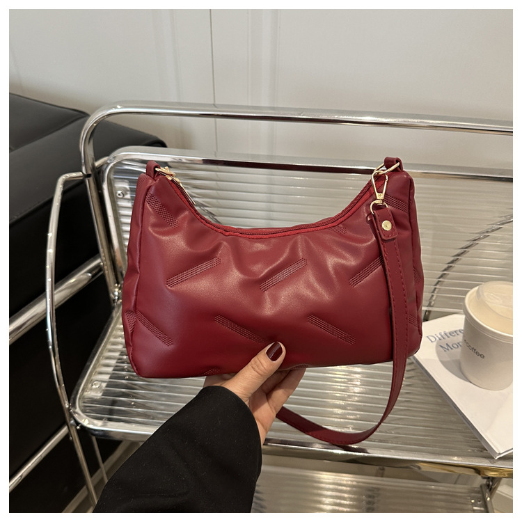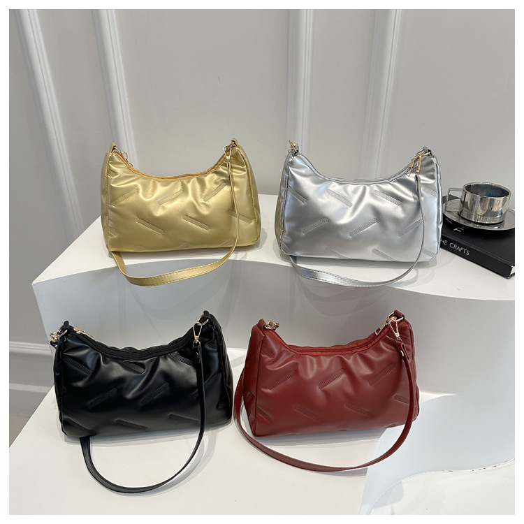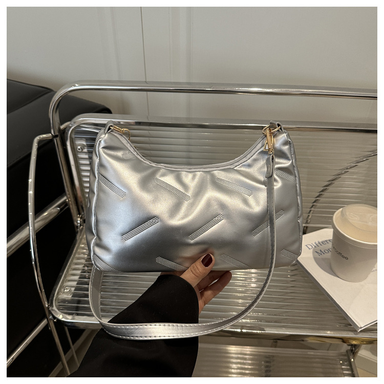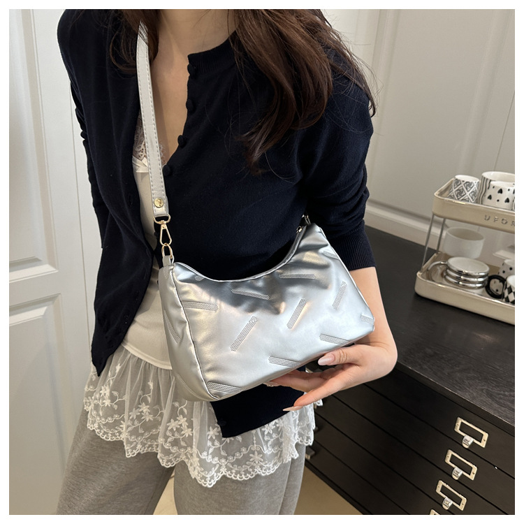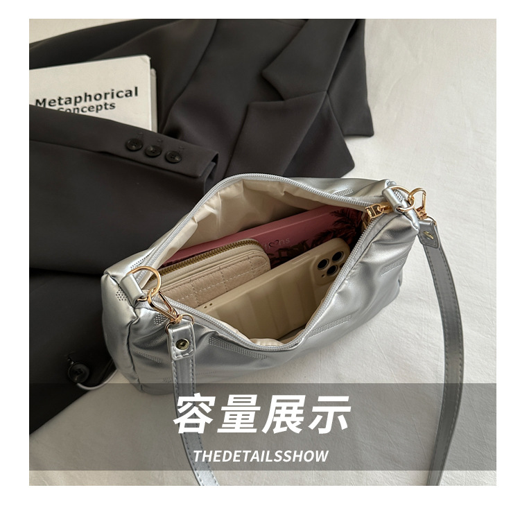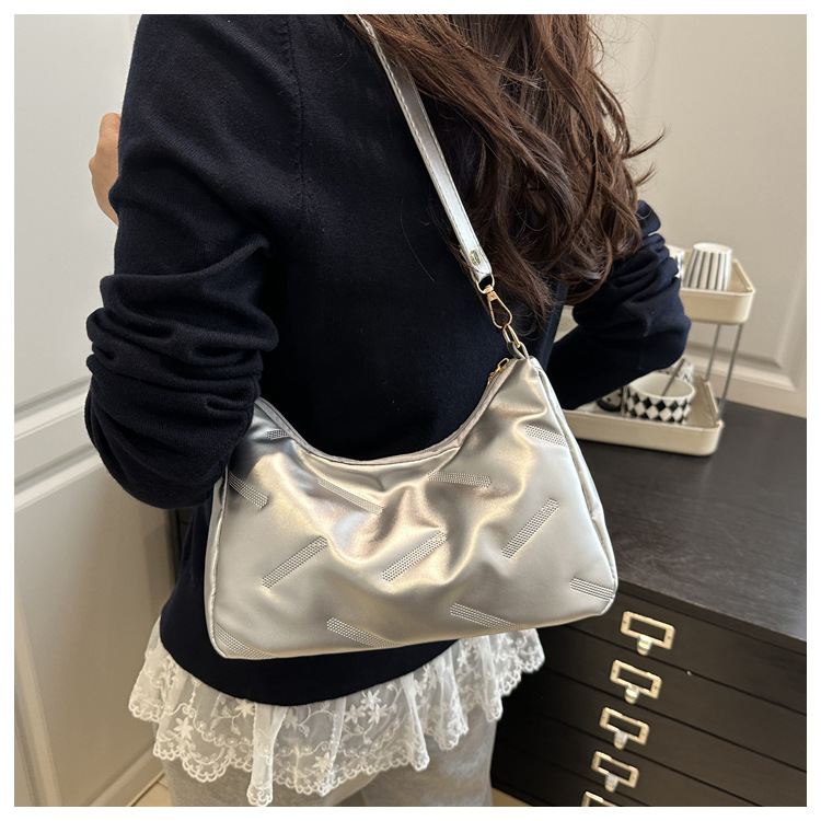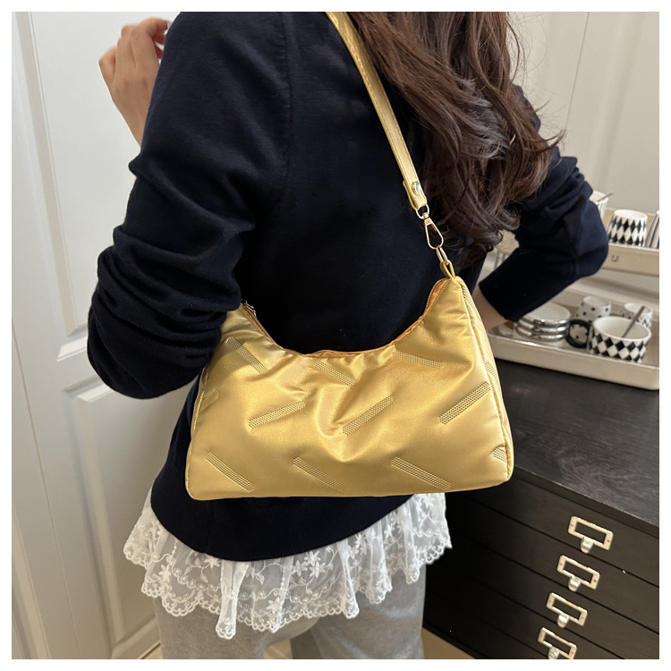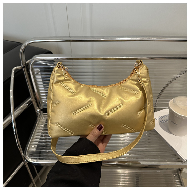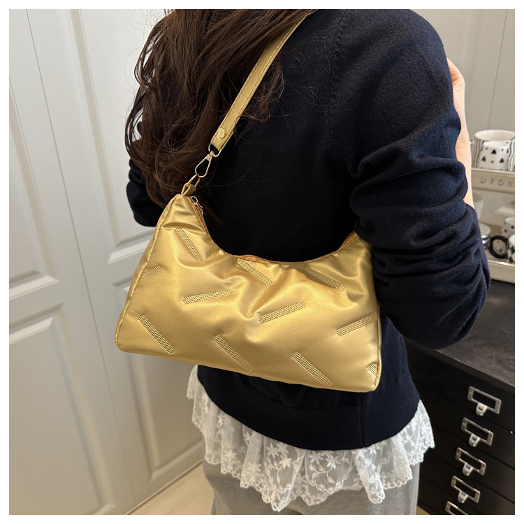 2025 새로운 봄 패션 대용량 가방 여성 다운 천 솔리드 컬러 단순 외국 스타일 싱글 어깨 겨드랑이 가방