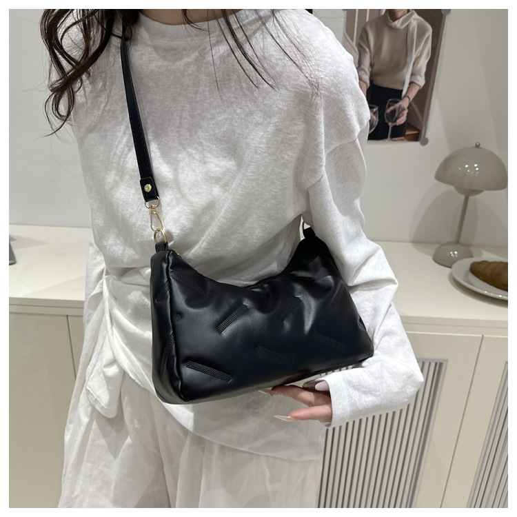 2025 새로운 봄 패션 대용량 가방 여성 다운 천 솔리드 컬러 단순 외국 스타일 싱글 어깨 겨드랑이 가방스토어 가기