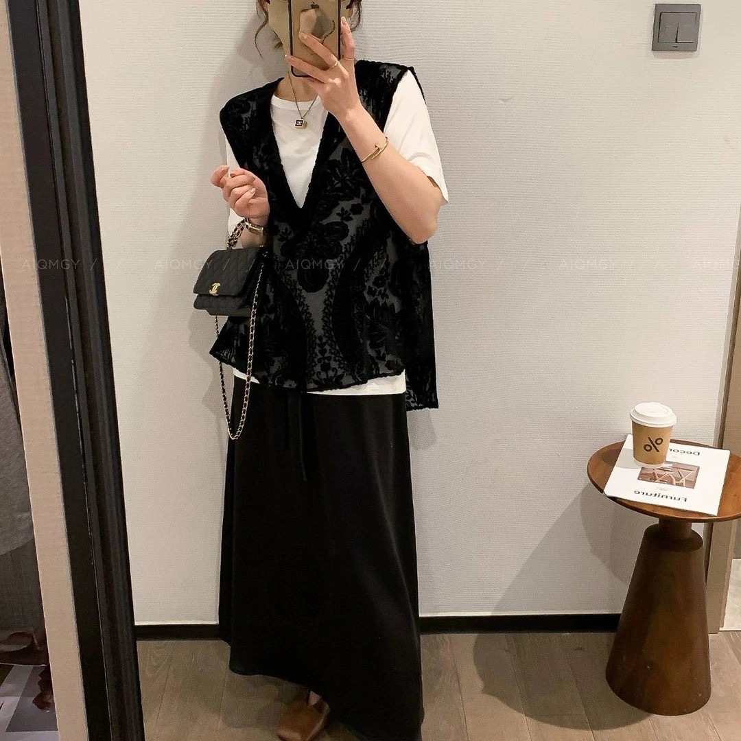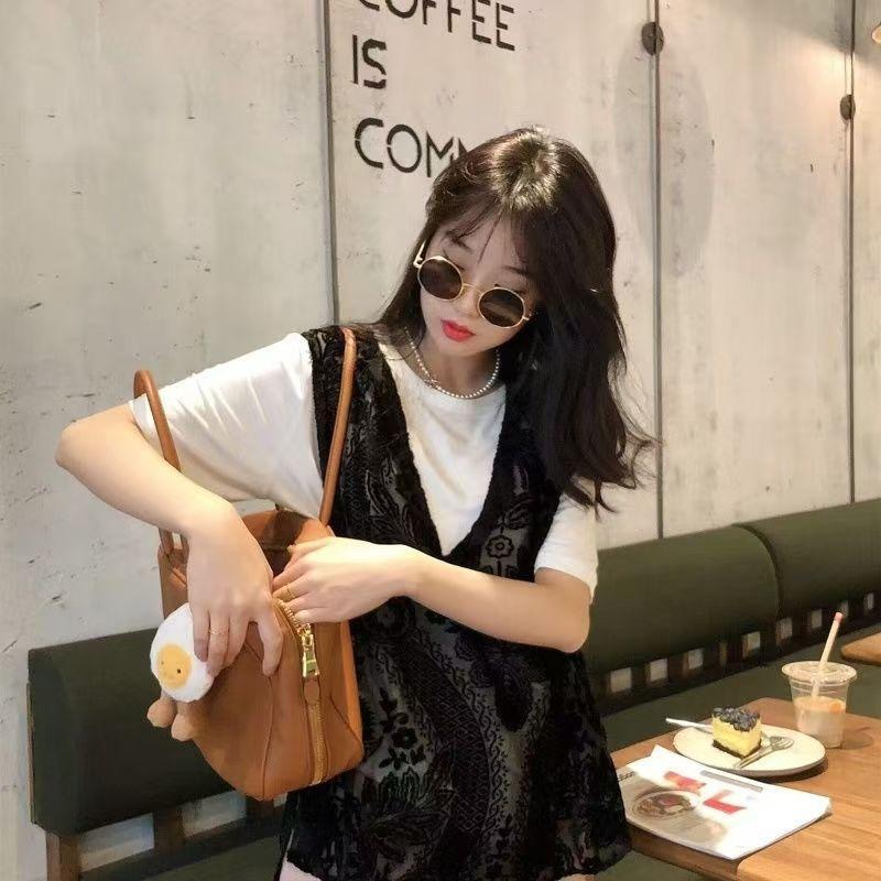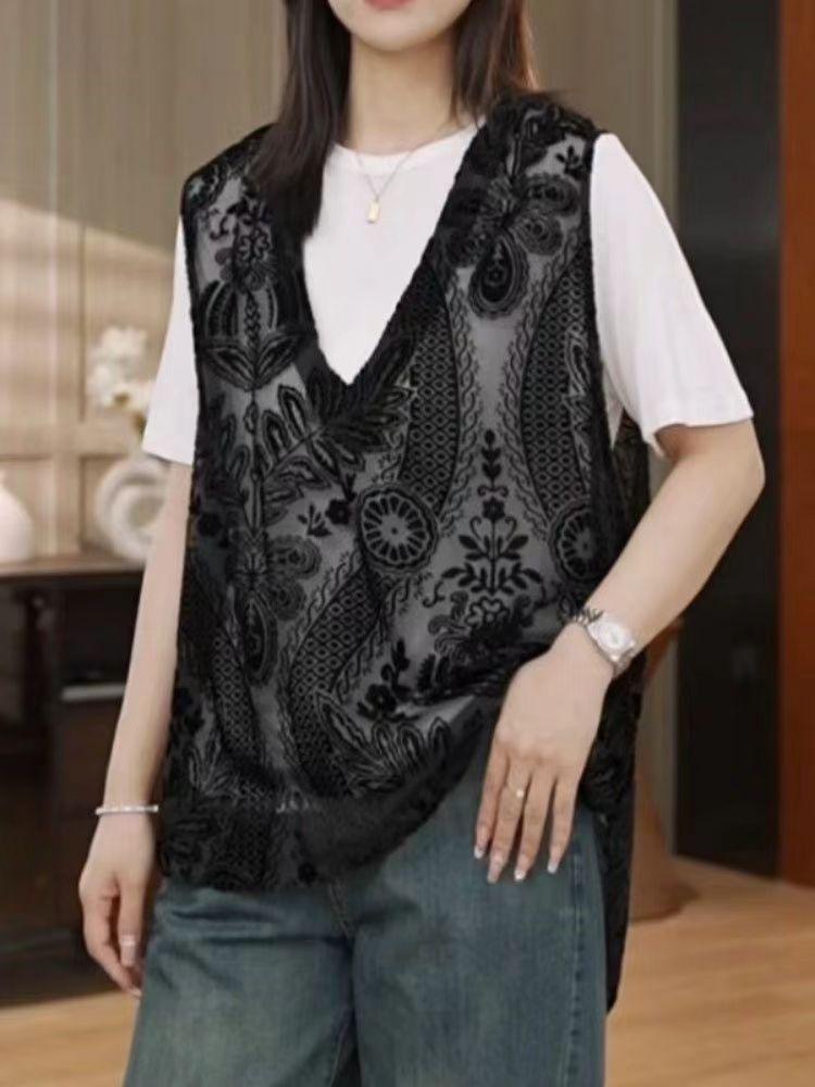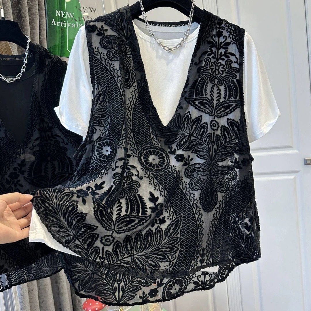 프랑스 자카드 레이스 조끼 봄과 여름 여성 패션 올 매치 새로운 중국 레이스 조끼 디자인 잠금스토어 가기