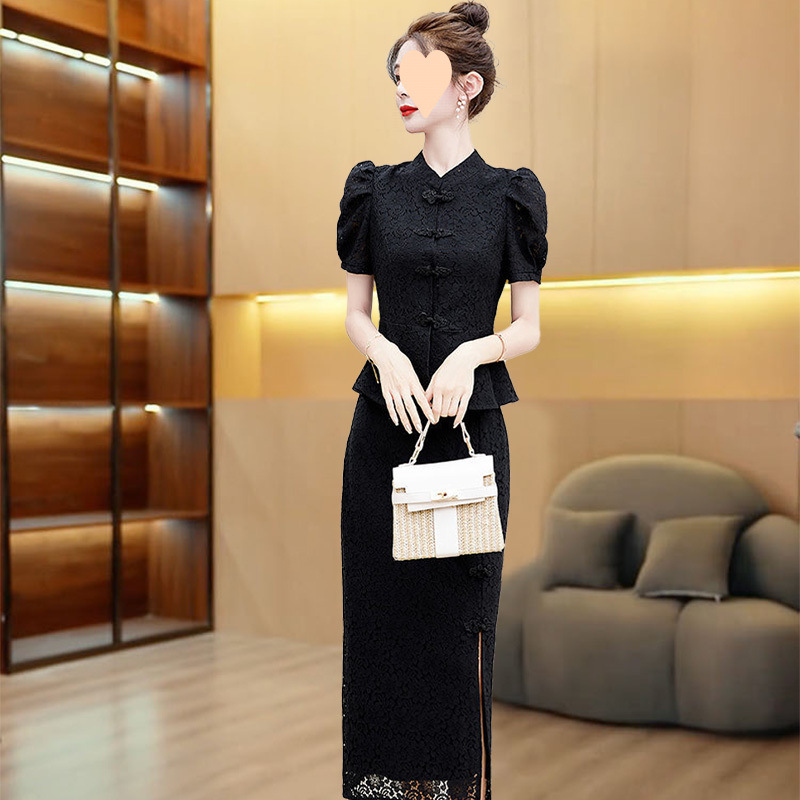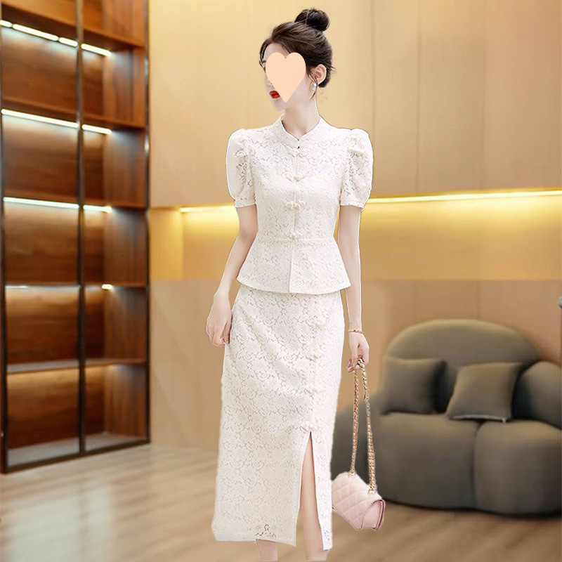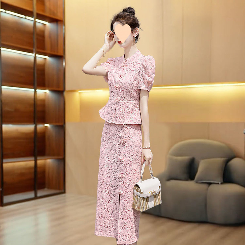 여성을위한 싱글/세트 개선 된 치파오 스커트 정장 2025 여름 새로운 중국 스타일 연예인 기질 힙 스커트 투피스 세트