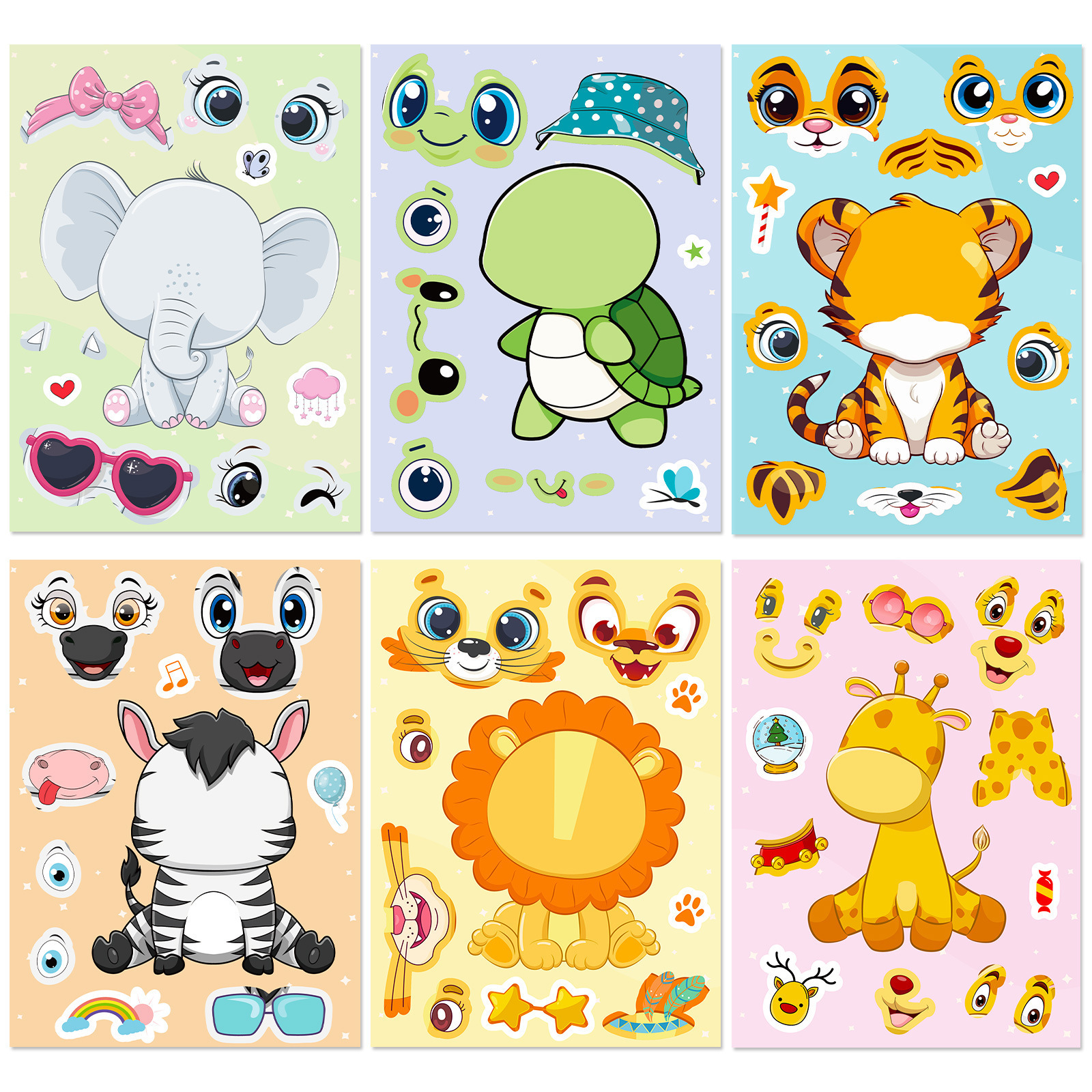 6 시트/팩 동물 얼굴 변경 스티커 만화 귀여운 작은 동물 기린 거북이 호랑이 DIY 드레스 업 스티커스토어 가기