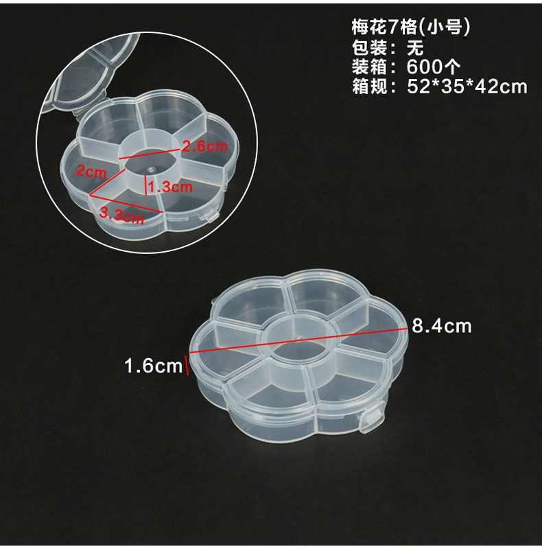 매화무늬 플라스틱 수납함, 구슬약, 휴대폰, 드릴, 보석함, 낚시도구, 손톱, 소형 액세서리, 원형 칸막이 상자