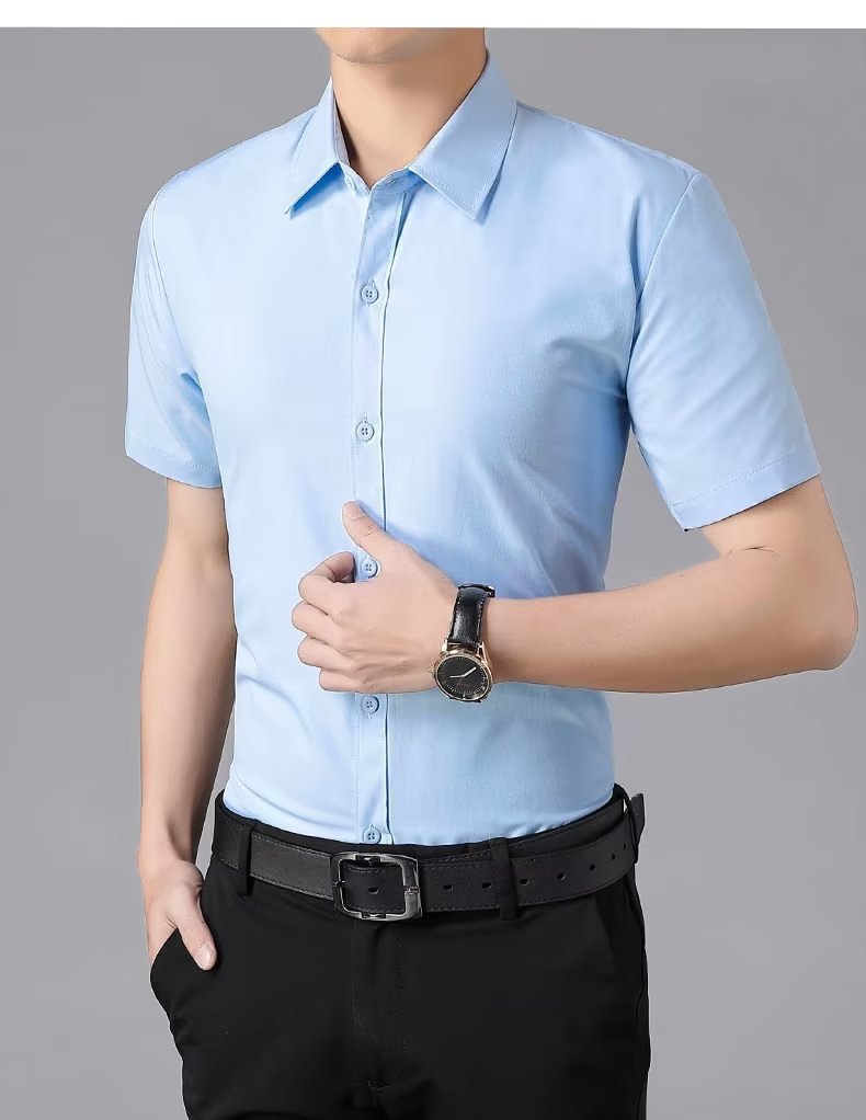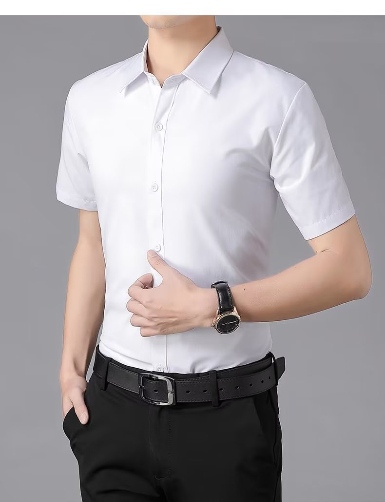 반소매 화이트 셔츠 남성 여름 비즈니스 캐주얼 비 다림질 안티 주름 슬림 핏 반소매 블루와 블랙 셔츠 최고의 남자스토어 가기