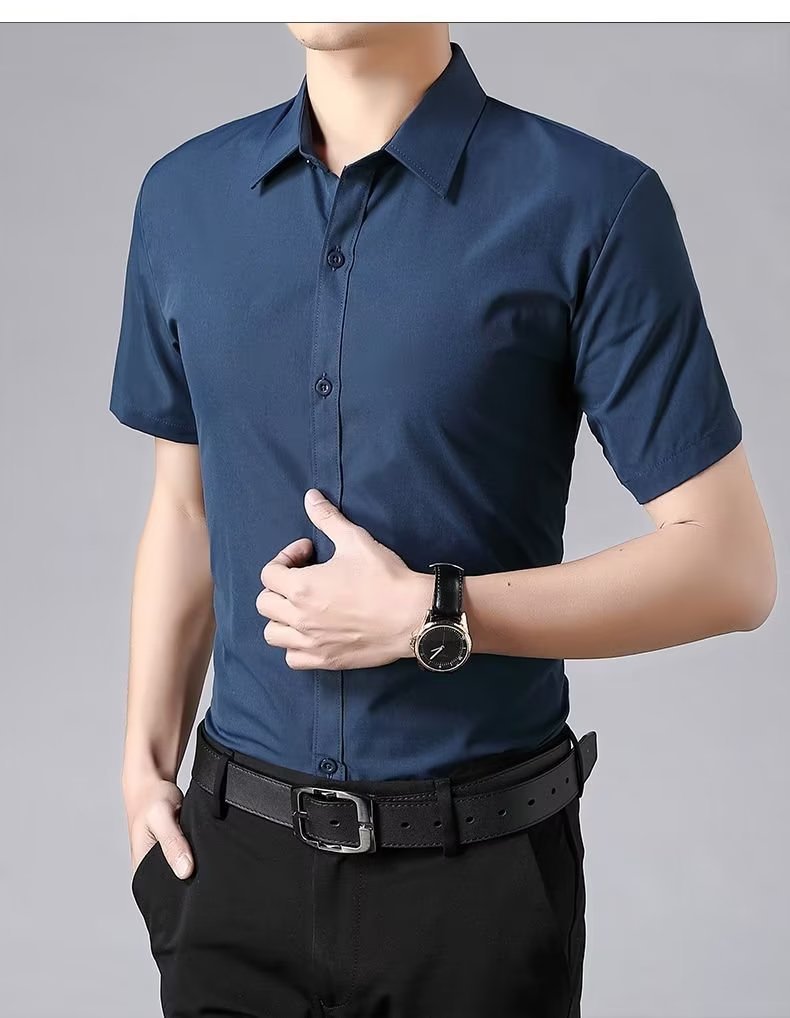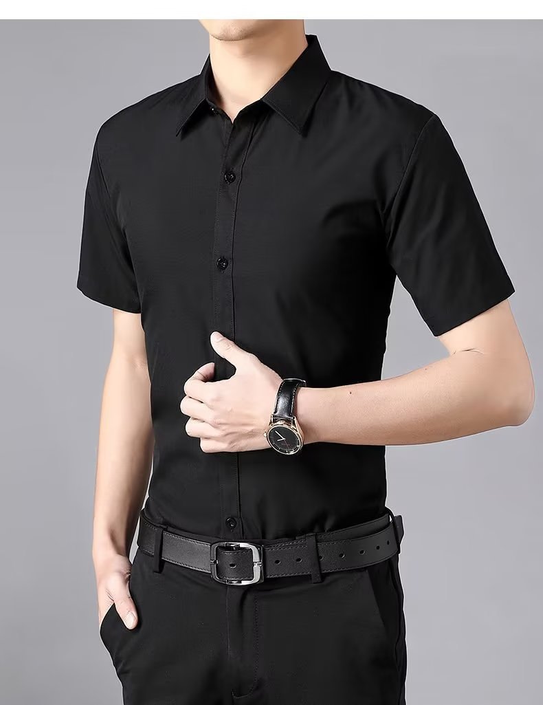 반소매 화이트 셔츠 남성 여름 비즈니스 캐주얼 비 다림질 안티 주름 슬림 핏 반소매 블루와 블랙 셔츠 최고의 남자