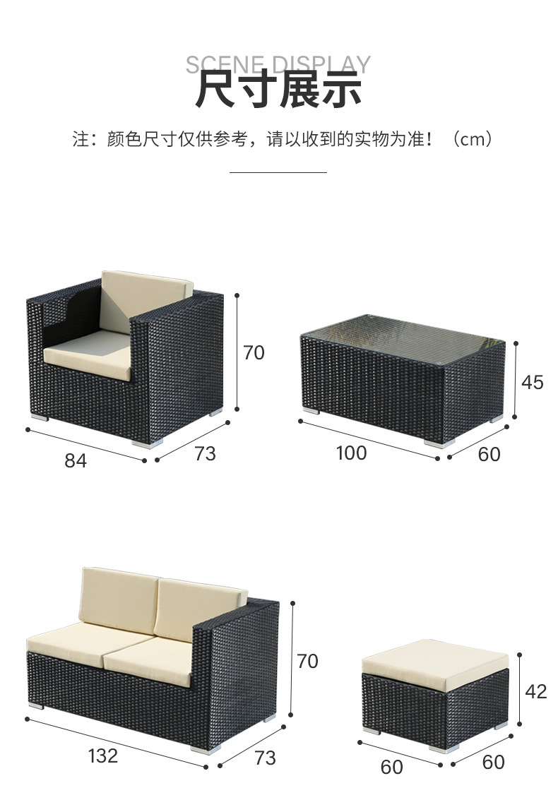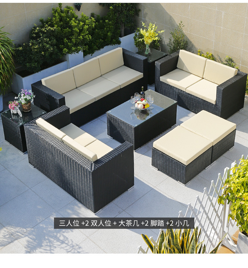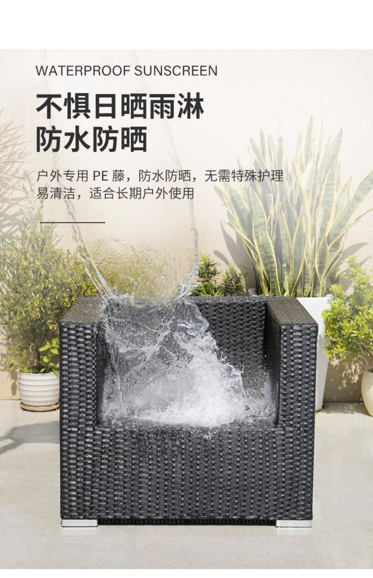 야외 소파 등나무 태양 보호 및 방수 야외 야외 레저 가구 안뜰 테라스 발코니 정원 등나무 의자 조합
