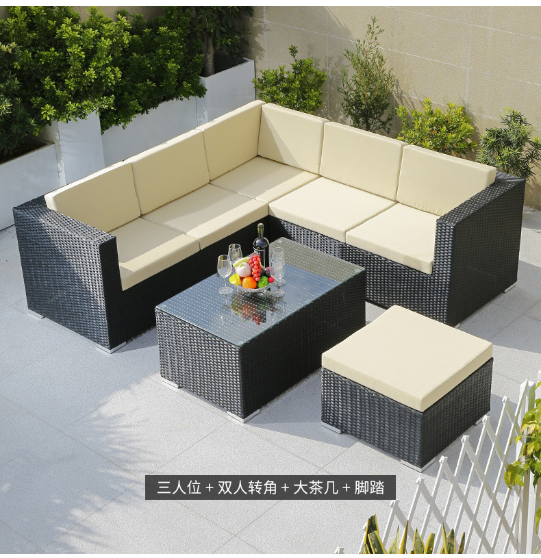 야외 소파 등나무 태양 보호 및 방수 야외 야외 레저 가구 안뜰 테라스 발코니 정원 등나무 의자 조합스토어 가기