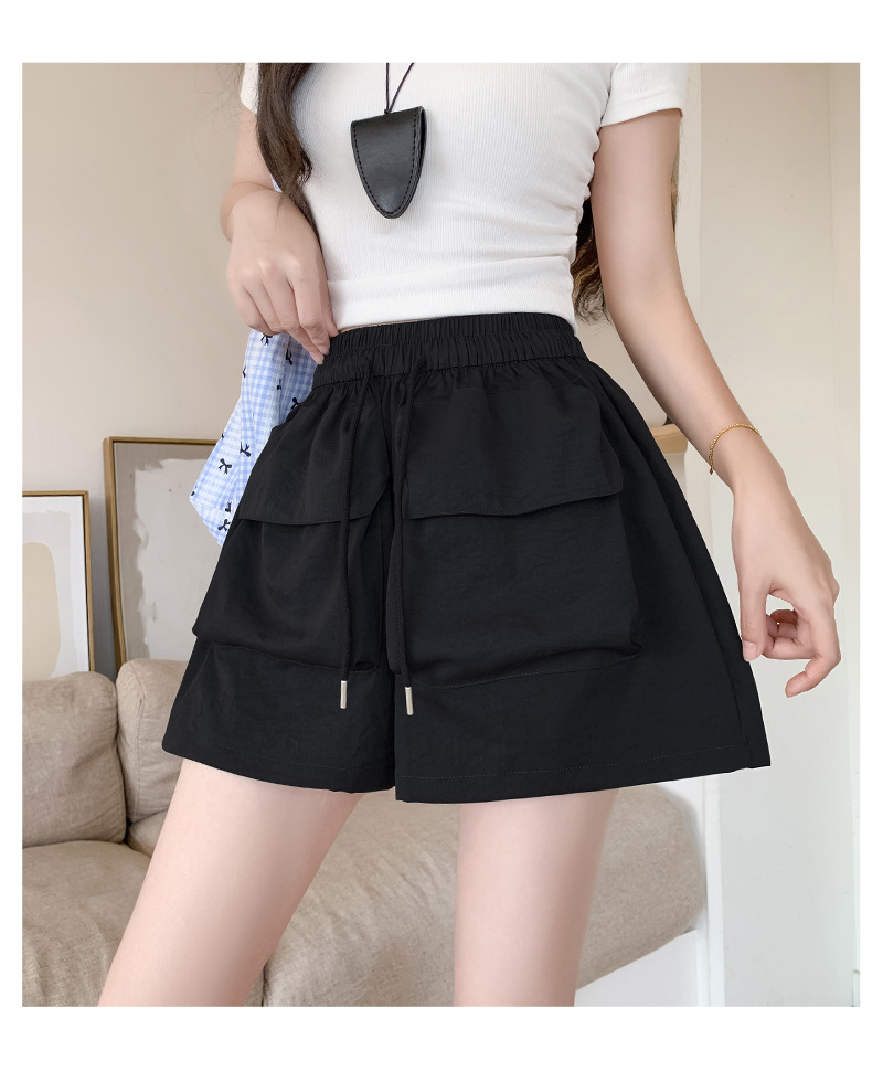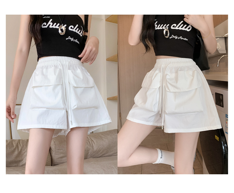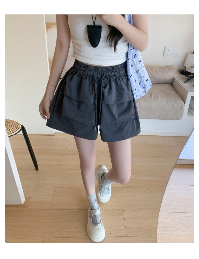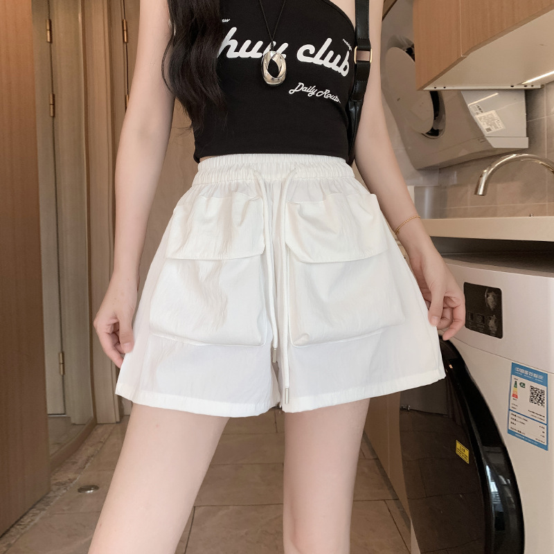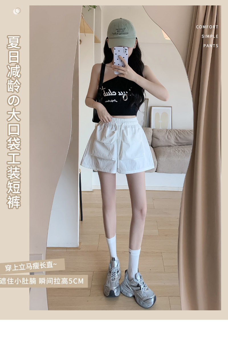 아메리칸 스타일 빠른 건조 대형 포켓 툴링 반바지 여성 여름 새로운 높은 허리 A 라인 스포츠 캐주얼 슬리밍 와이드 레그 반바지스토어 가기