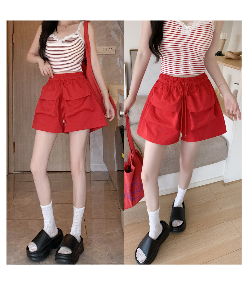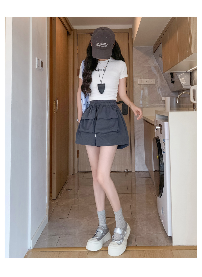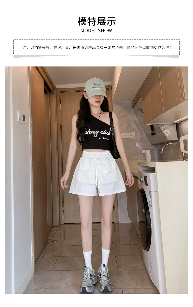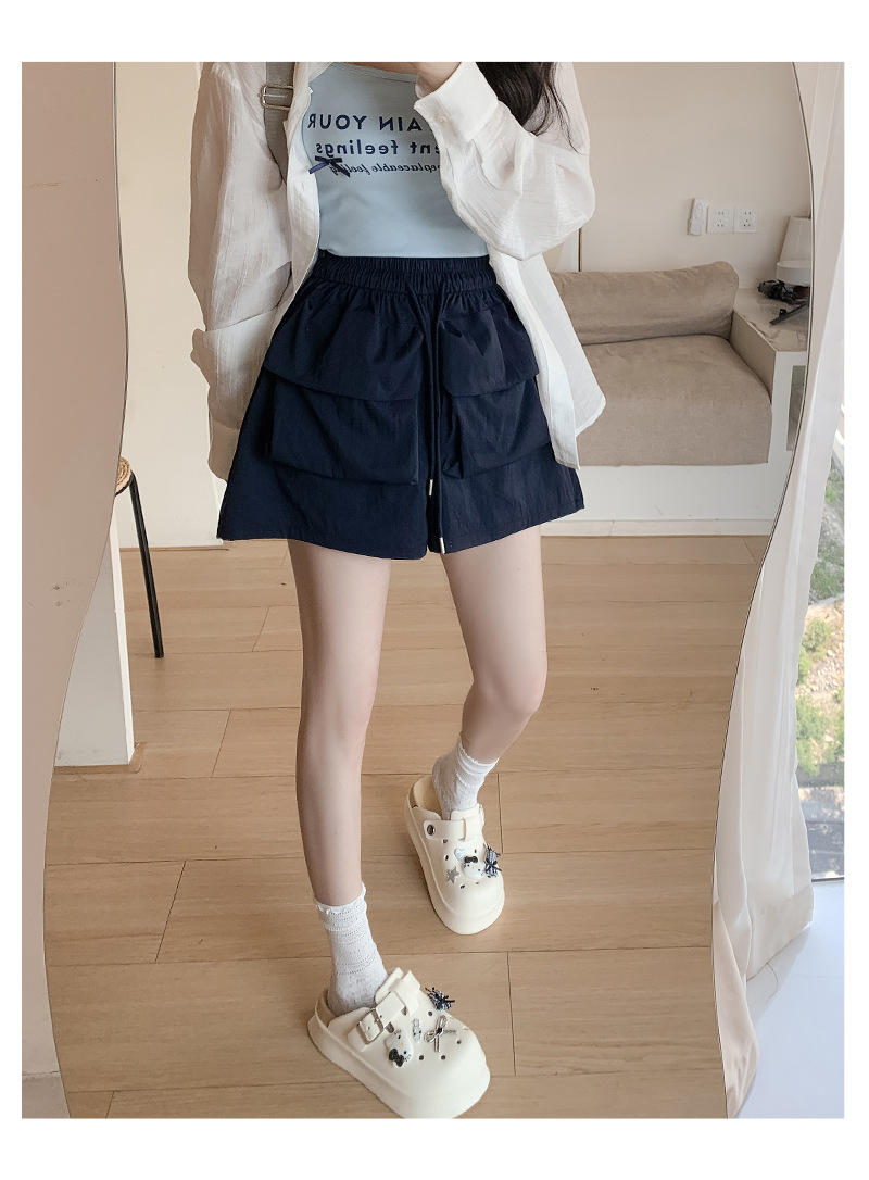 아메리칸 스타일 빠른 건조 대형 포켓 툴링 반바지 여성 여름 새로운 높은 허리 A 라인 스포츠 캐주얼 슬리밍 와이드 레그 반바지스토어 가기