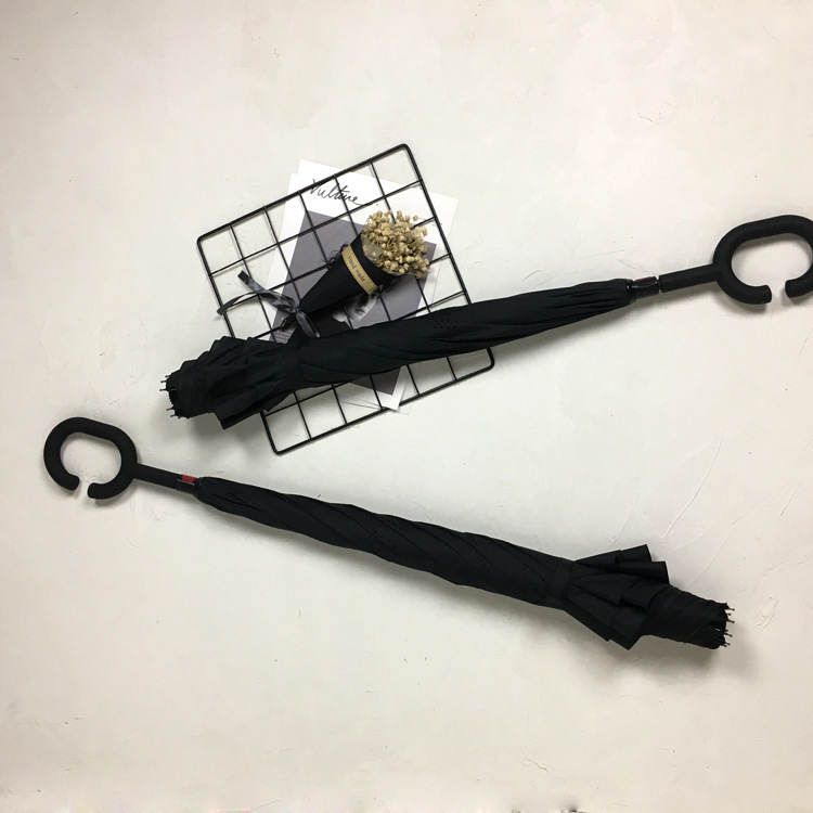 재고 8 본 C 형 핸즈프리 자동차 더블 레이어 리버스 우산 스트레이트 로드 우산은 햇볕이 잘 드는 우산을 세울 수 있습니다 로고 재고 만들 수 있습니다.스토어 가기