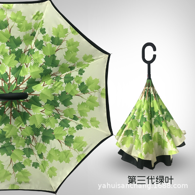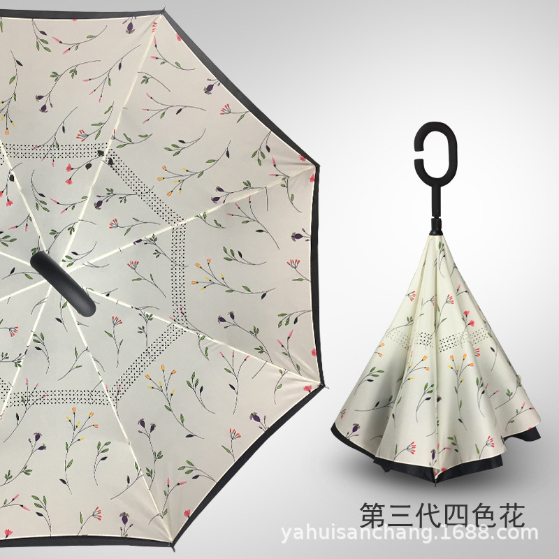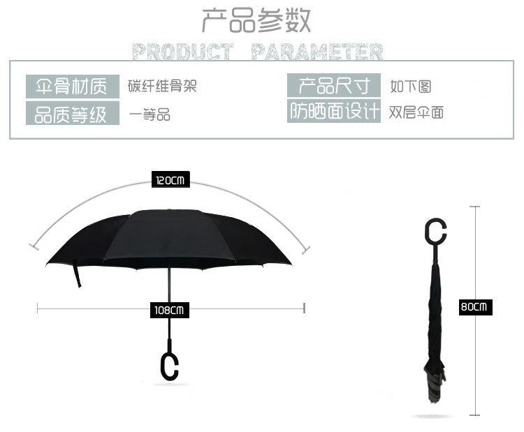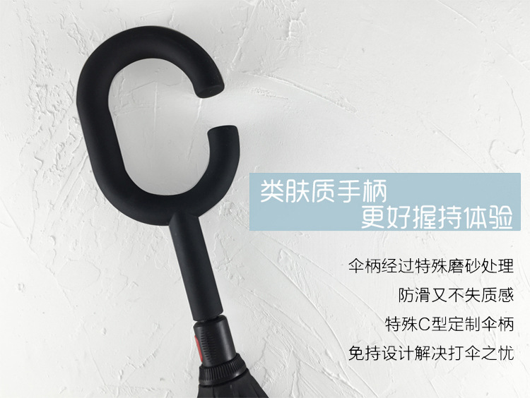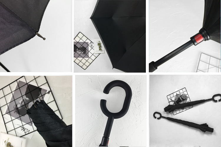 재고 8 본 C 형 핸즈프리 자동차 더블 레이어 리버스 우산 스트레이트 로드 우산은 햇볕이 잘 드는 우산을 세울 수 있습니다 로고 재고 만들 수 있습니다.