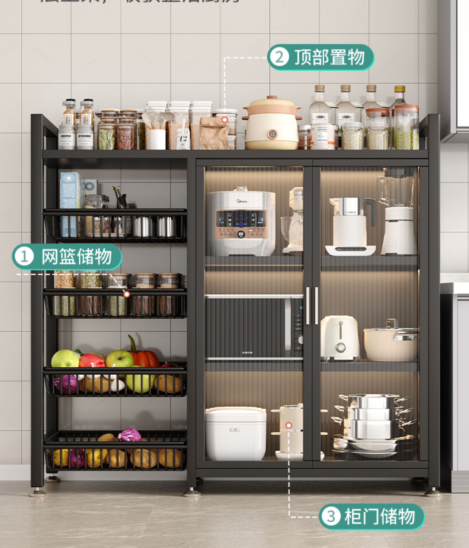 주방 수납 선반 바닥에서 천장까지 다층 수납 캐비닛 수납 캐비닛 수납 캐비닛 도어가 있는 다기능 캐비닛 야채 선반스토어 가기