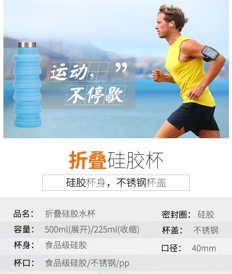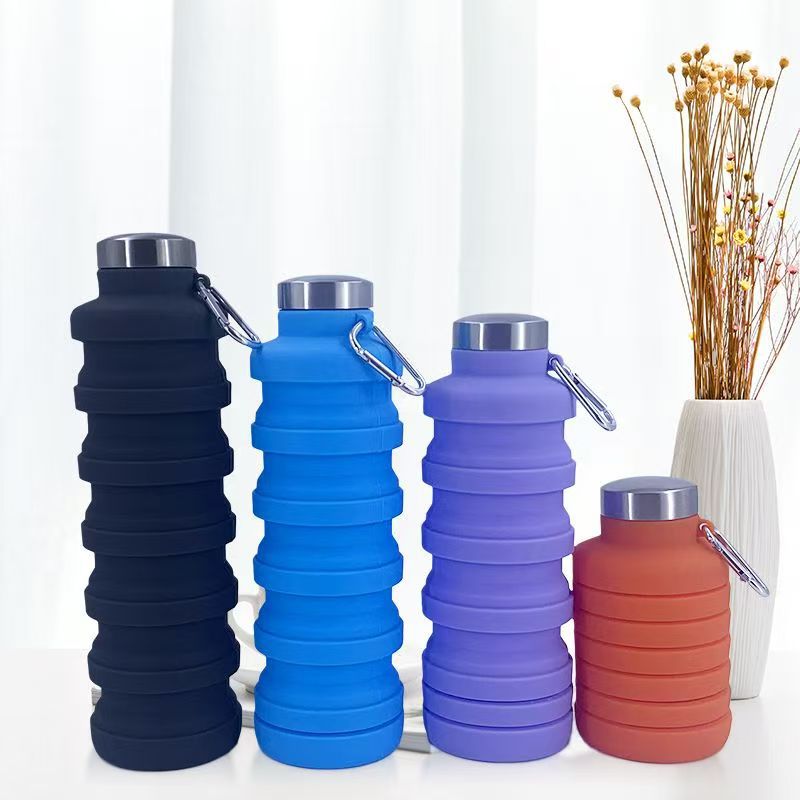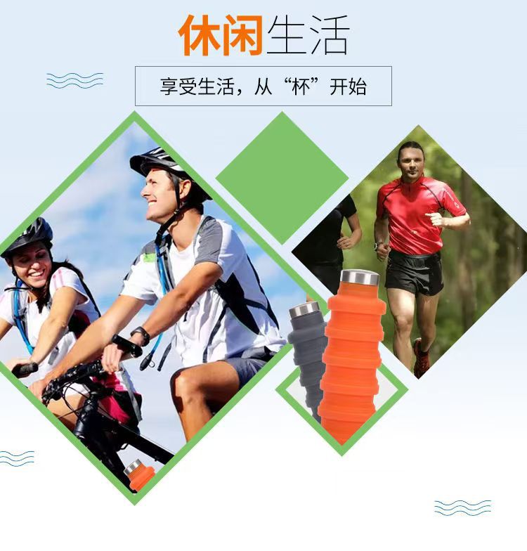 국경을 넘는 접는 실리콘 물병 학생 스포츠 달리기 산악 여행 피트니스 휴대용 물 컵 어린이를위한 개폐식 물병