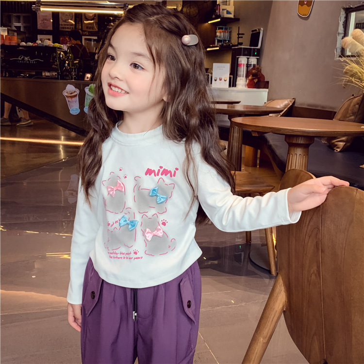 어린이 가을 의류 새로운 어린 소녀 긴 소매 소녀 밑바닥 셔츠 봄 가을 셔츠 안에 만화 인쇄 헤어 세대