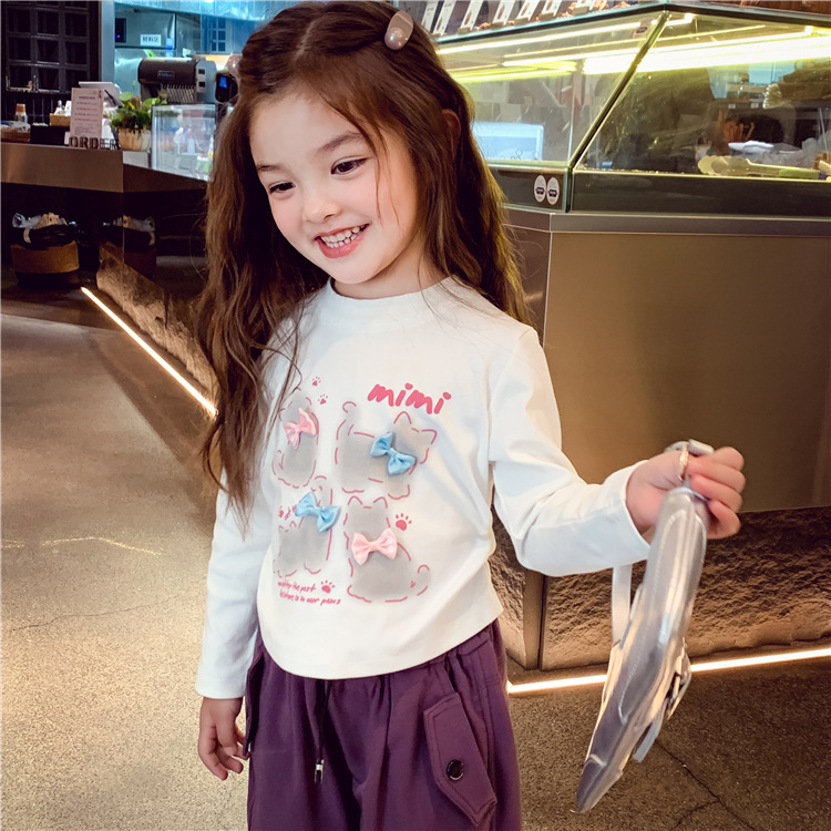 어린이 가을 의류 새로운 어린 소녀 긴 소매 소녀 밑바닥 셔츠 봄 가을 셔츠 안에 만화 인쇄 헤어 세대스토어 가기