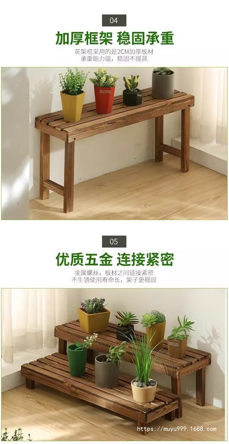 꽃 랙 저장 랙 단단한 나무 탄화 사다리 다층 발코니 바닥 미끄럼 방지 나무 실내 야외 녹색 꽃 냄비 랙