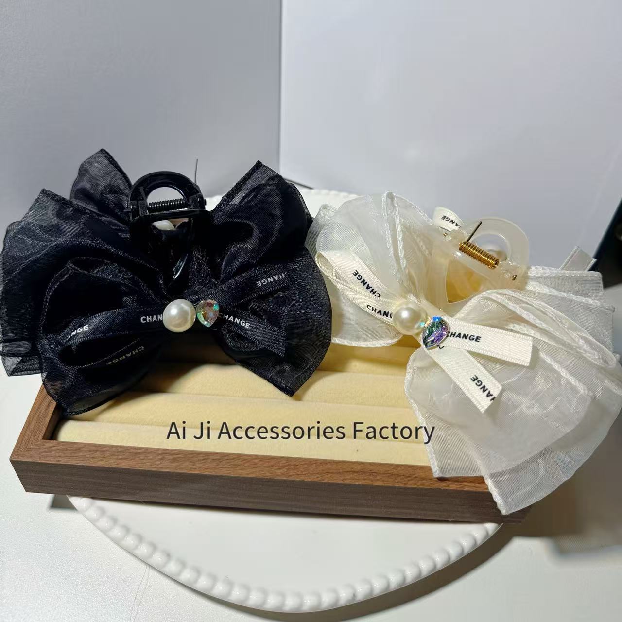 • 사각브릭 보우클립 [오프화이트]