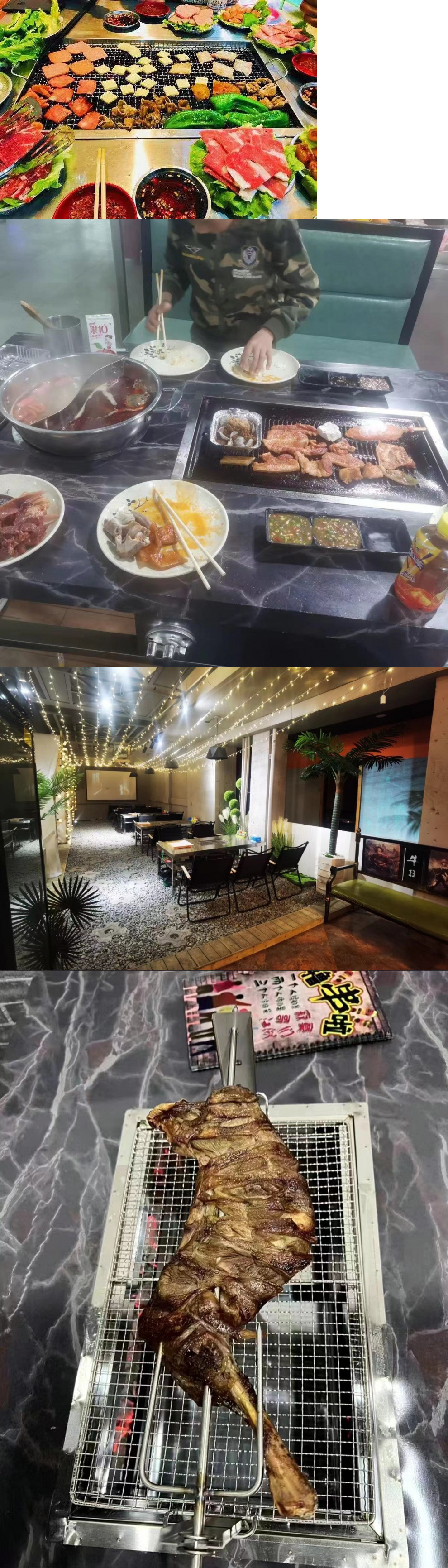 바베큐 테이블 상업용 무연 스테인레스 스틸 셀프 서비스 숯 야외 스톨 홈 바베큐 양고기 다리 스토브 그릴 및 끓이기 올인원