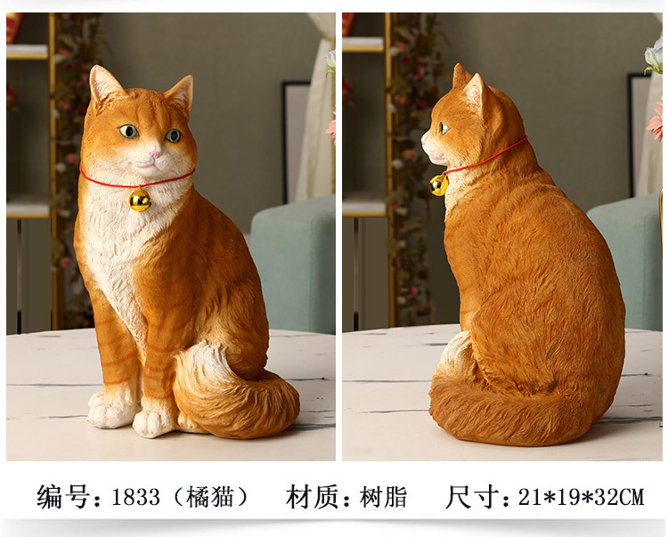 크리 에이 티브 선물 시뮬레이션 고양이 장식품 귀여운 오렌지 고양이 암소 고양이 삼색 고양이 수지 모델 거실 데스크탑 장식