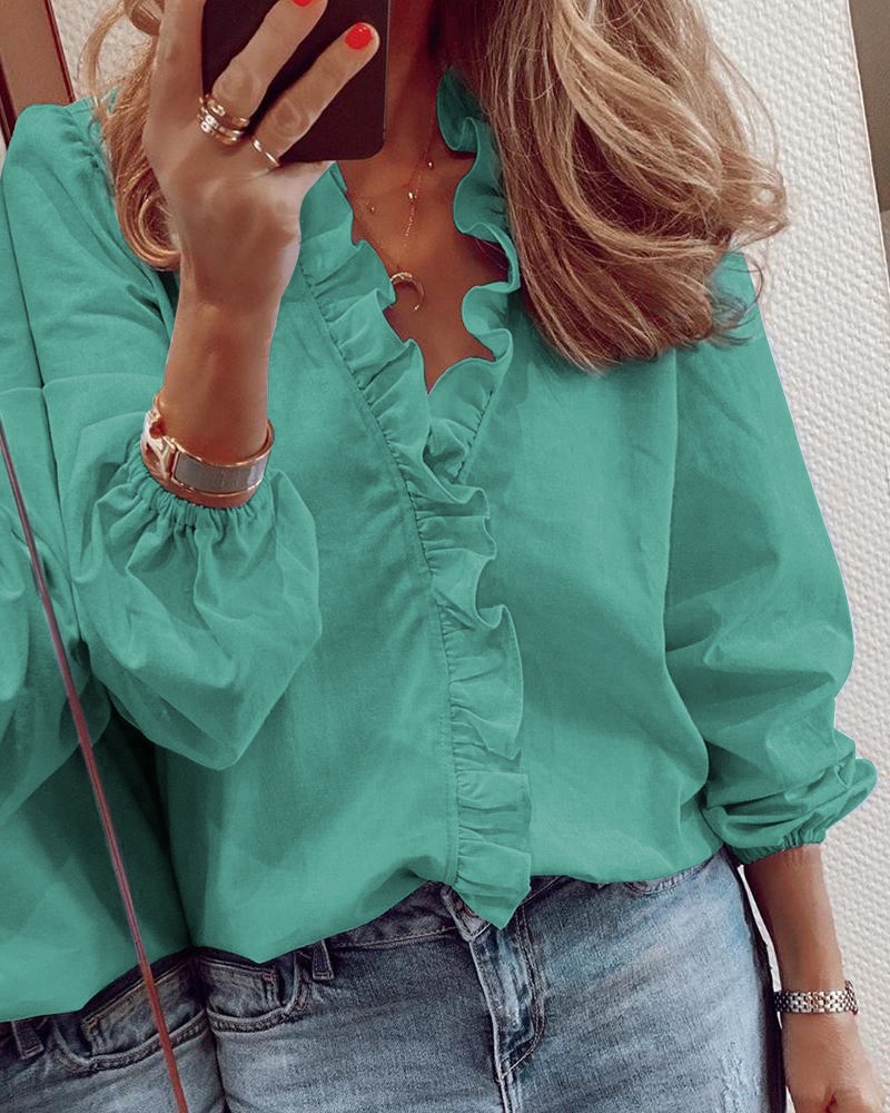 아마존 위시 알리익스프레스 이베이 봄 여름 유럽 및 미국 신상 긴팔 러플 셔츠 여성용 셔츠 우아함