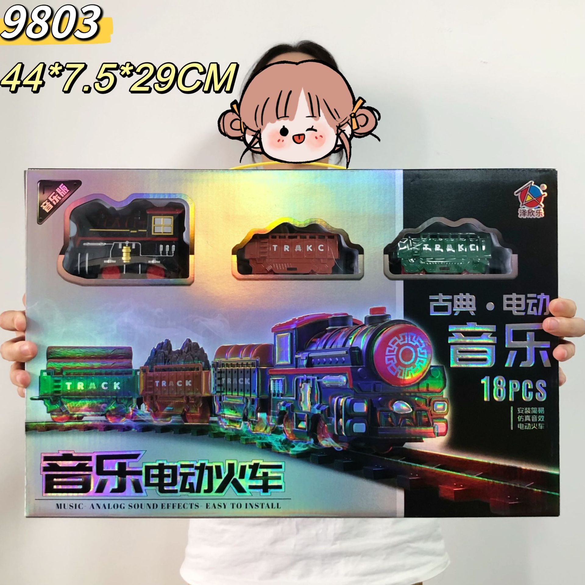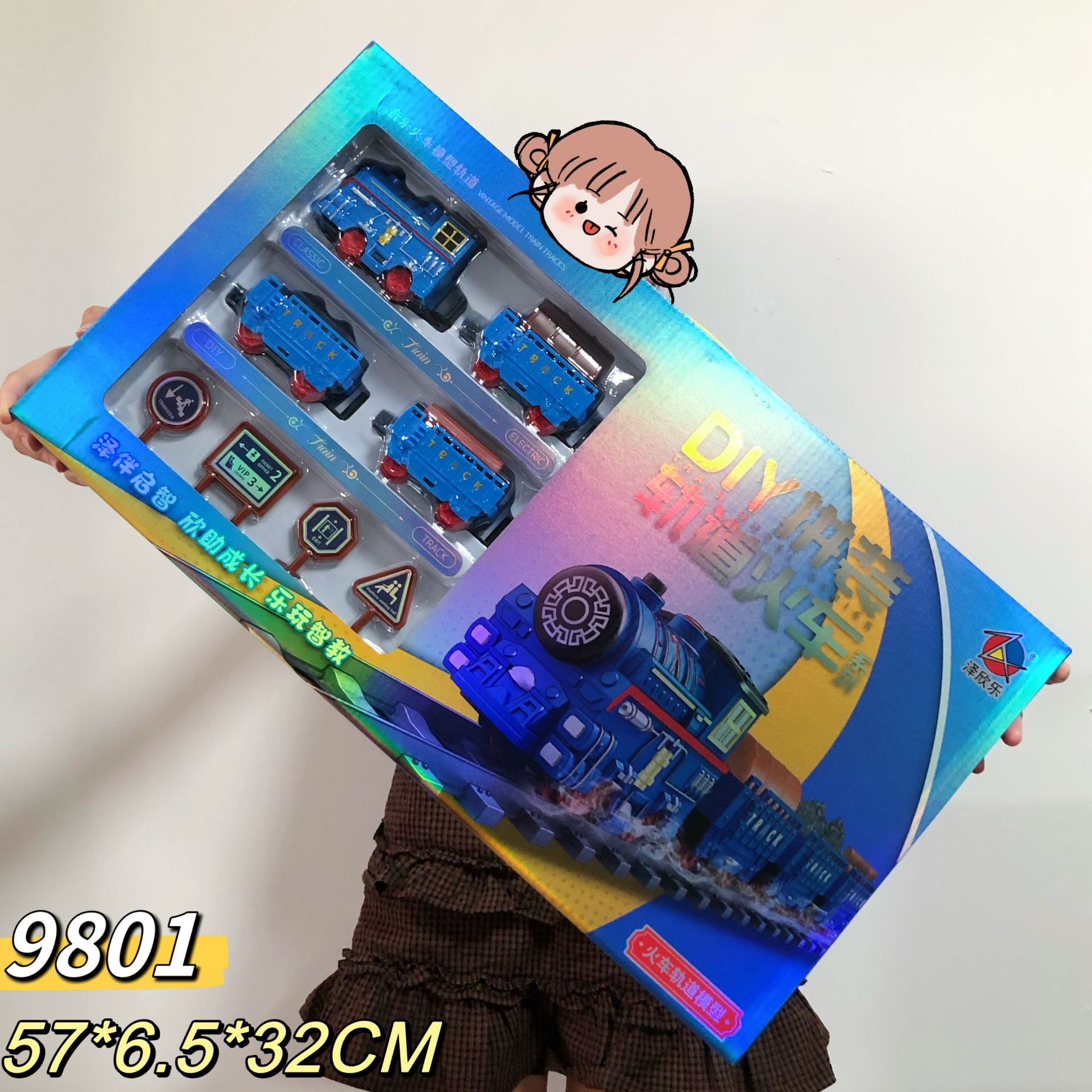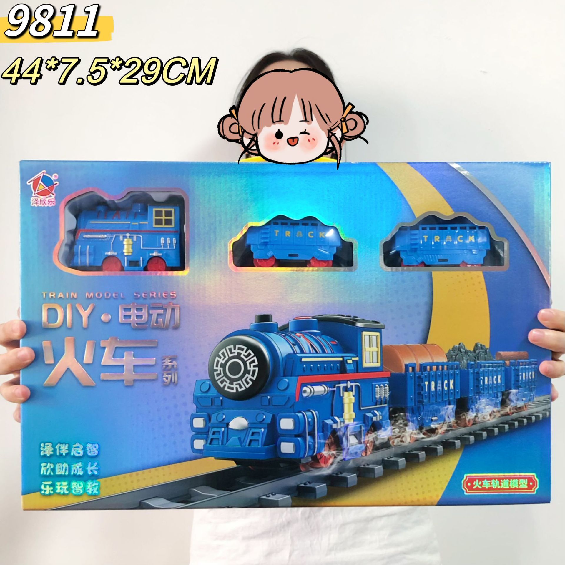 소년 장난감 DIY 조립 복고풍 증기 기관차 시뮬레이션 전기 트랙 음악 기차 기차 선물 상자 도매스토어 가기