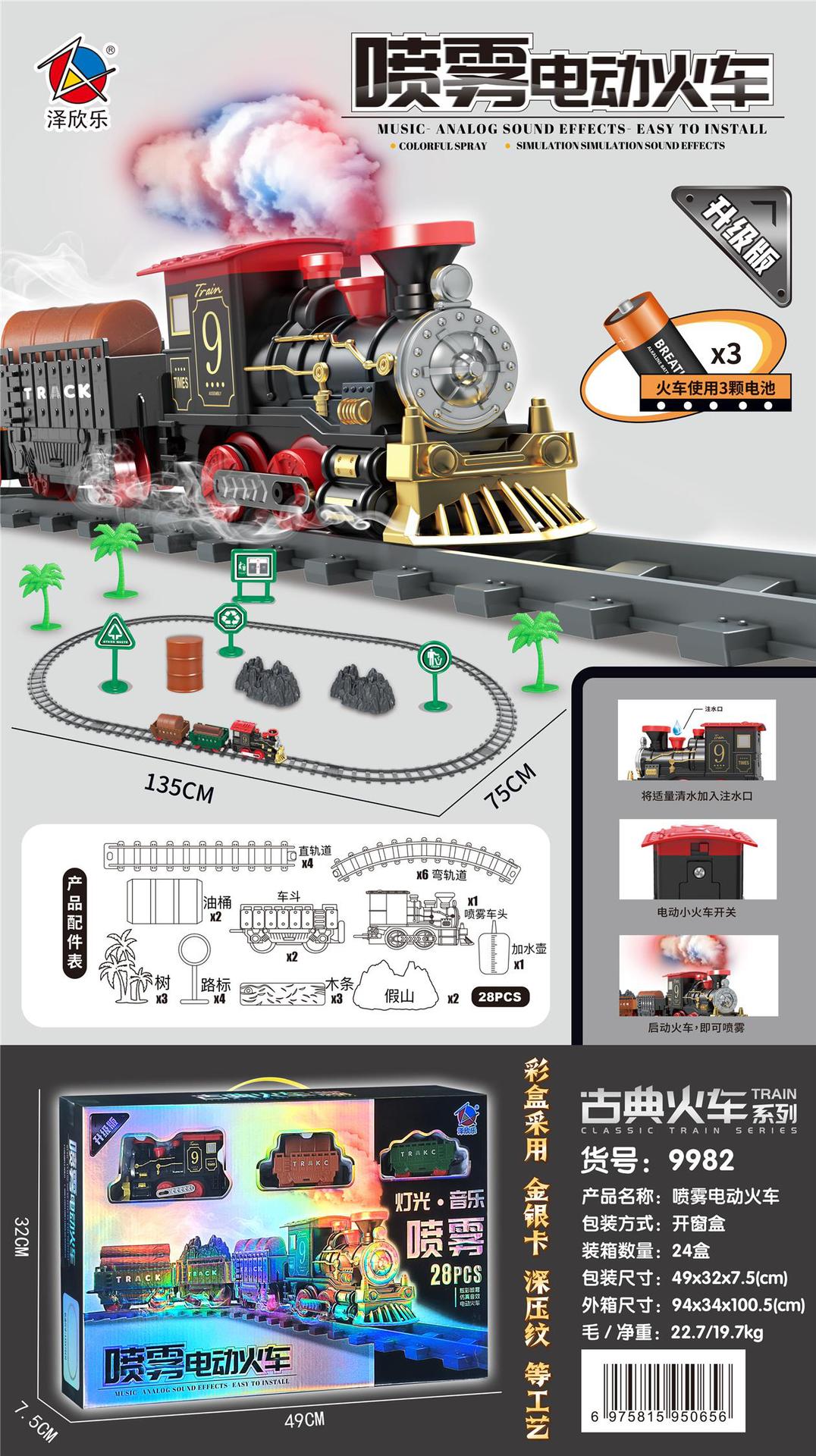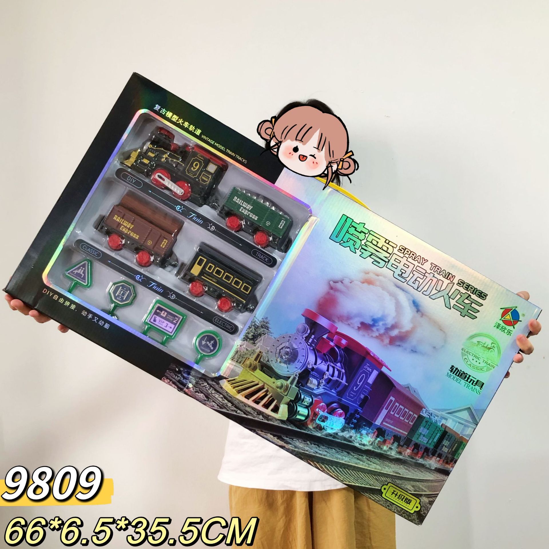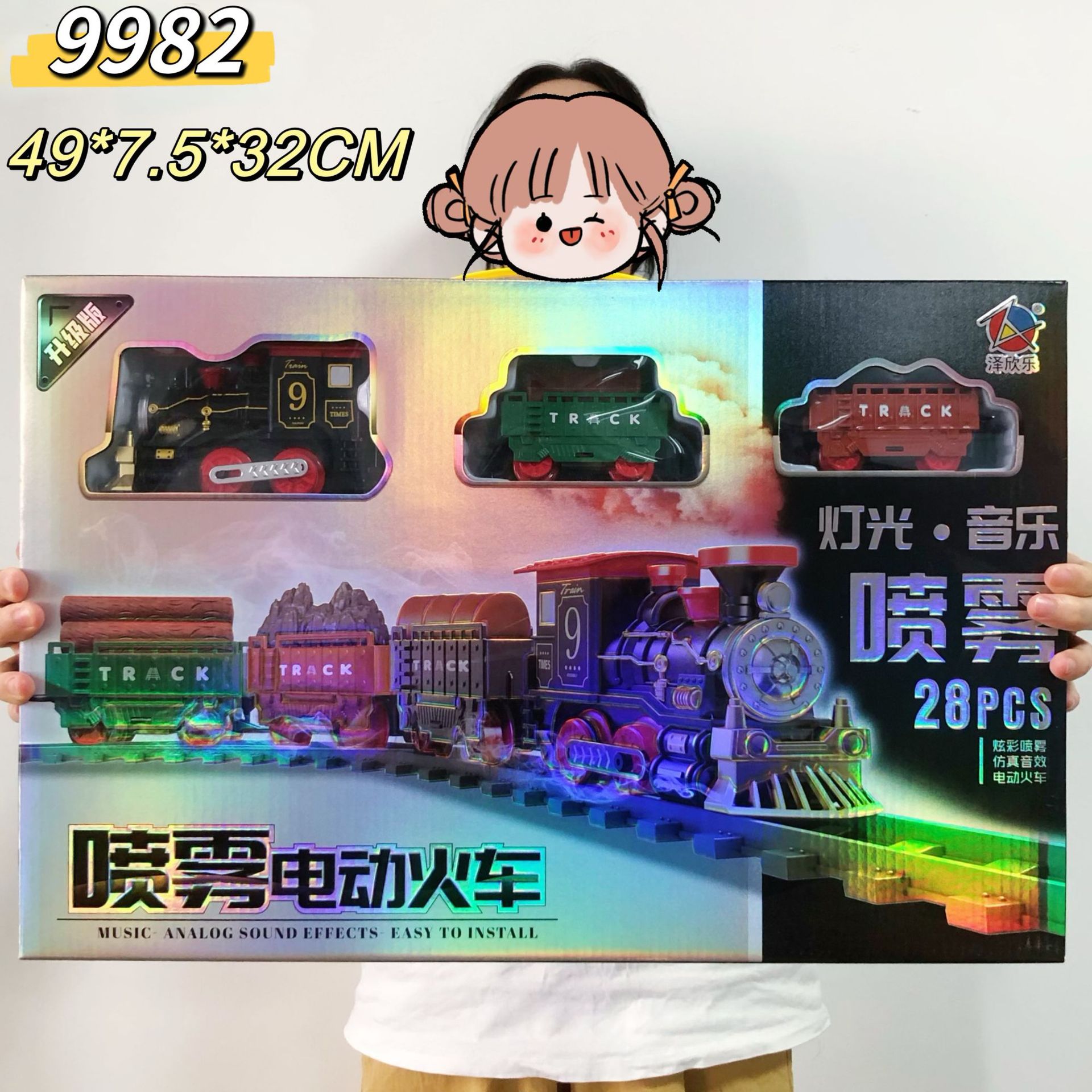 소년 장난감 DIY 조립 복고풍 증기 기관차 시뮬레이션 전기 트랙 음악 기차 기차 선물 상자 도매스토어 가기