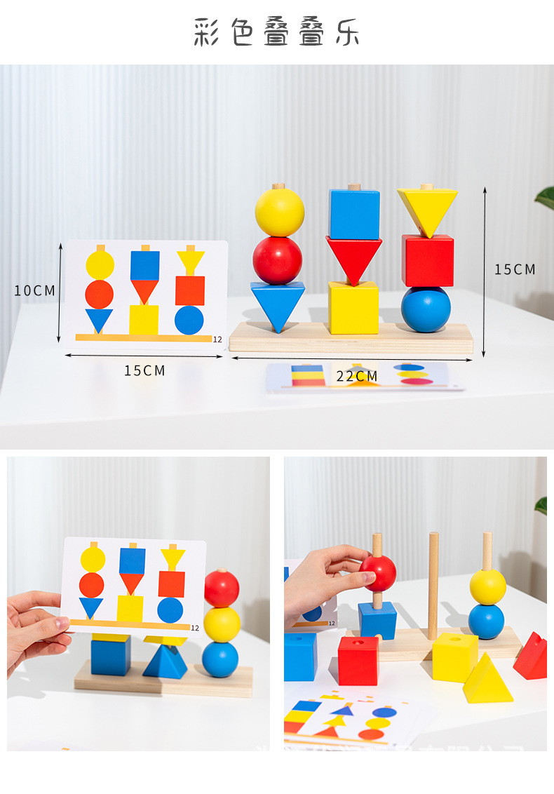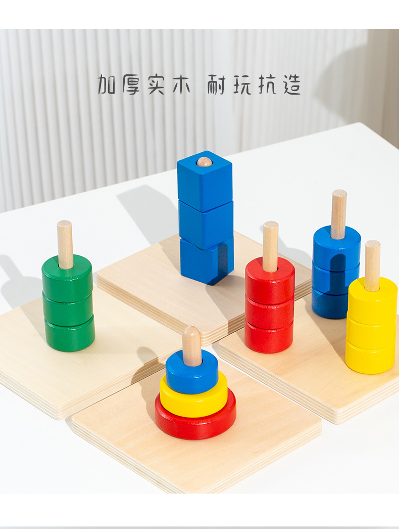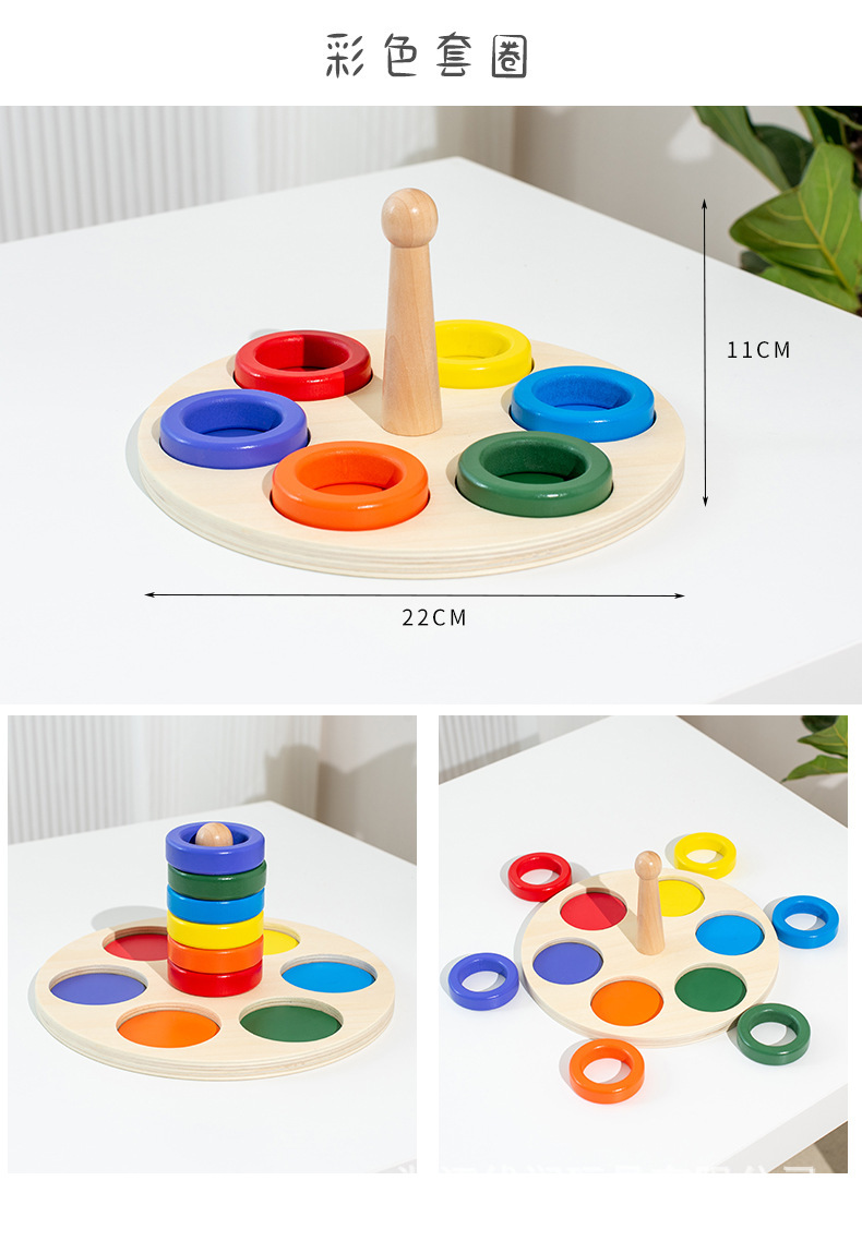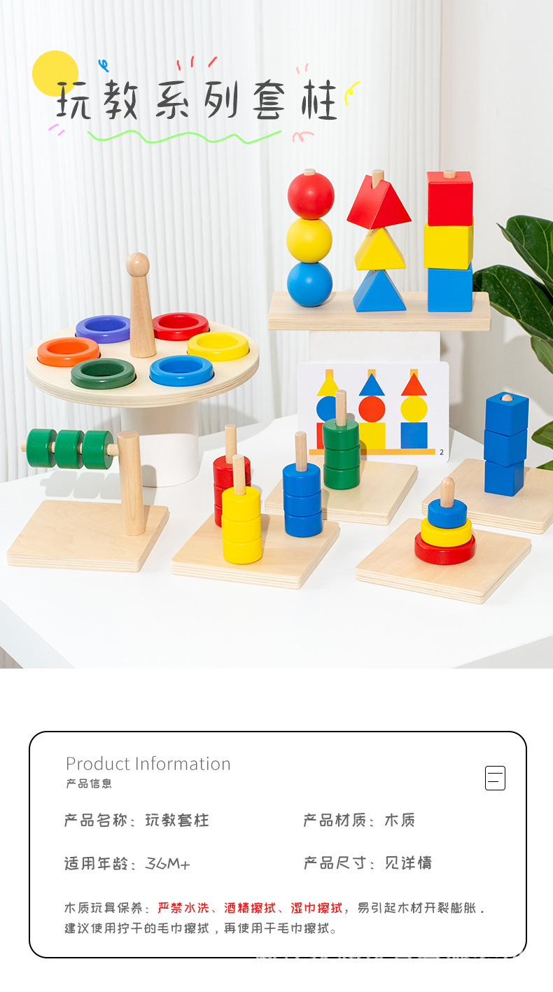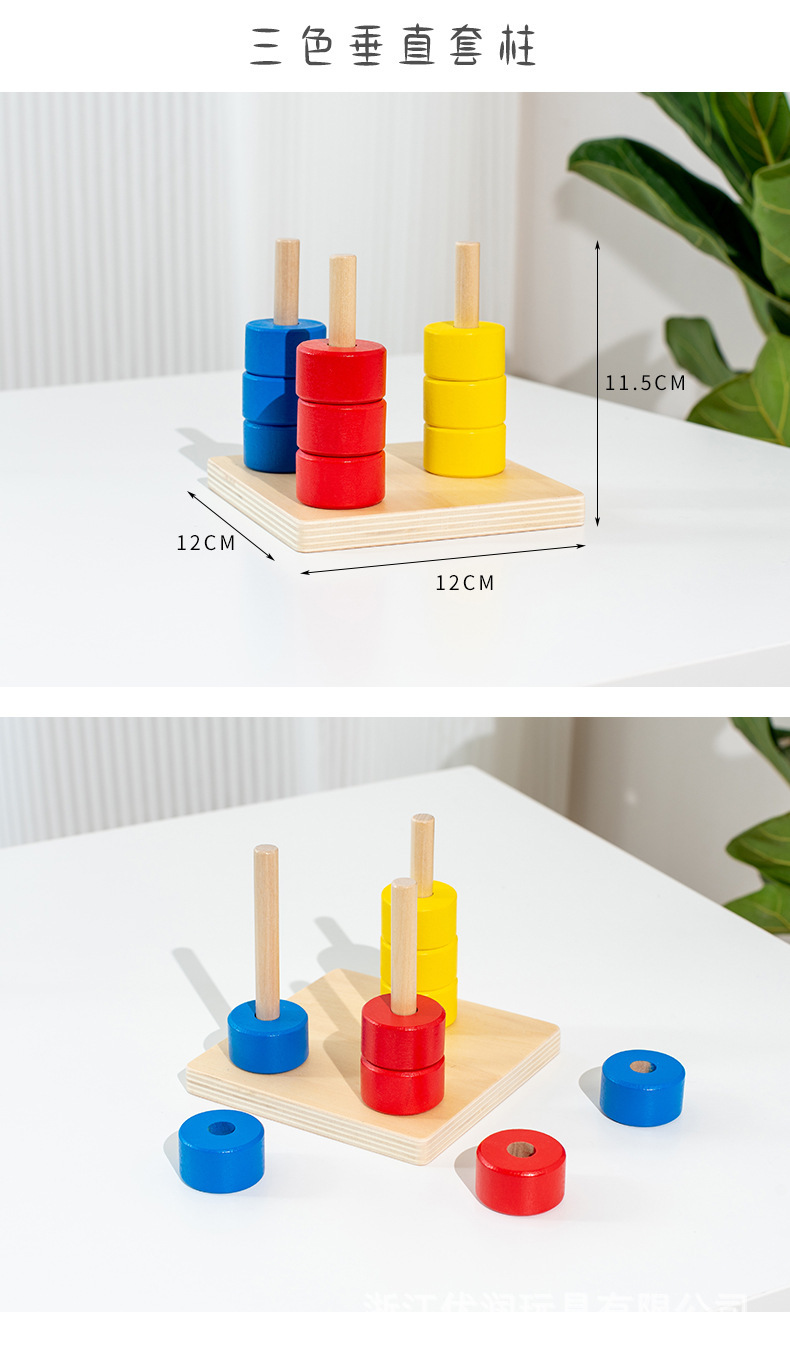 Weiwihu 어린이 나무 다기능 세트 기둥 링 기하학적 모양 일치하는 3 색 수직 링 도매 장난감스토어 가기