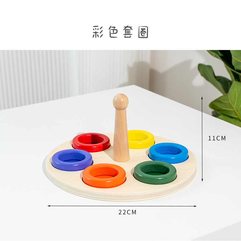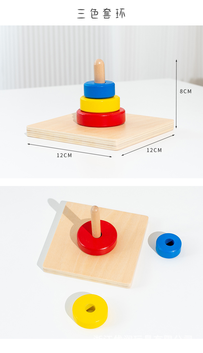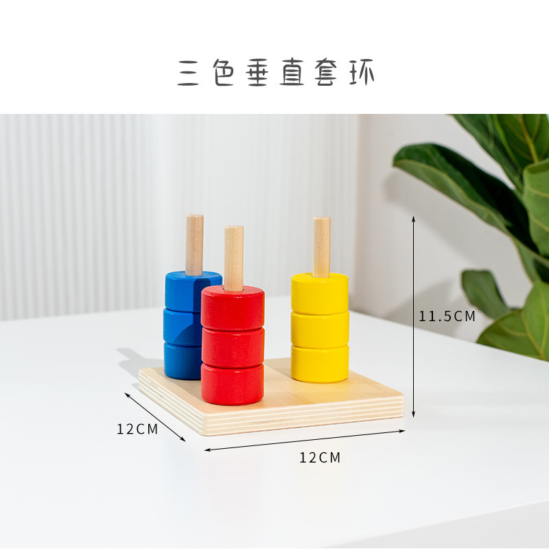 Weiwihu 어린이 나무 다기능 세트 기둥 링 기하학적 모양 일치하는 3 색 수직 링 도매 장난감
