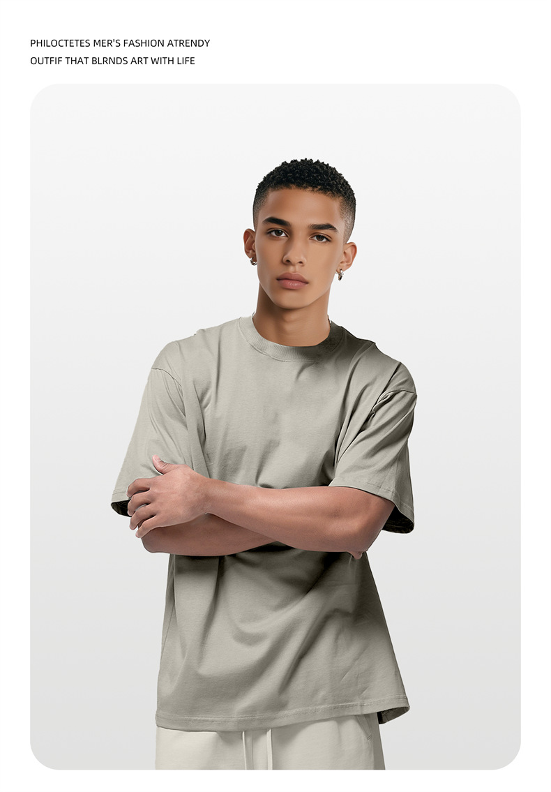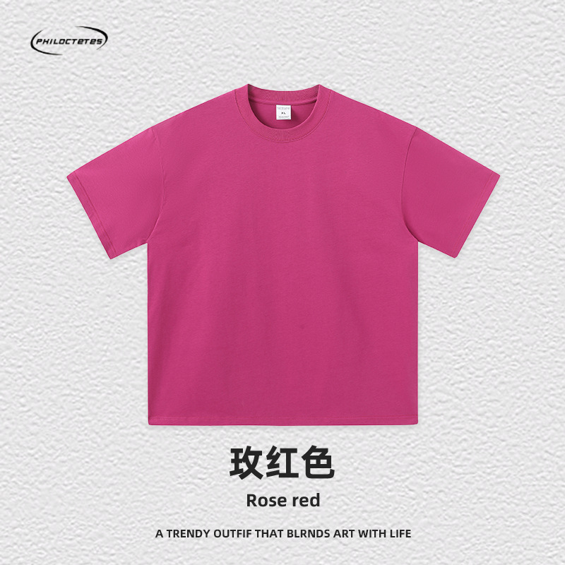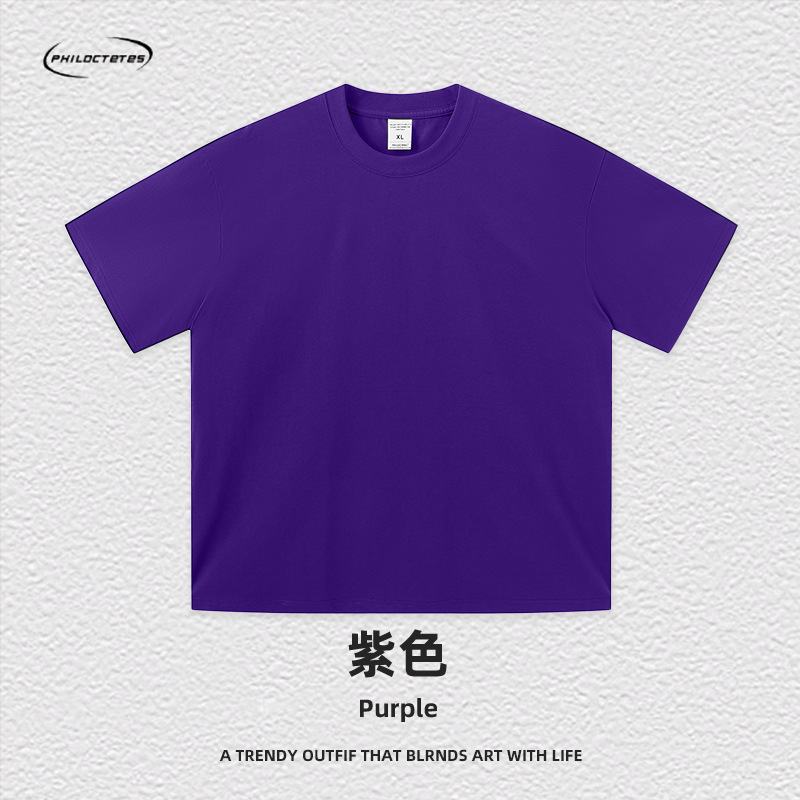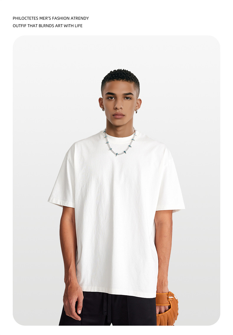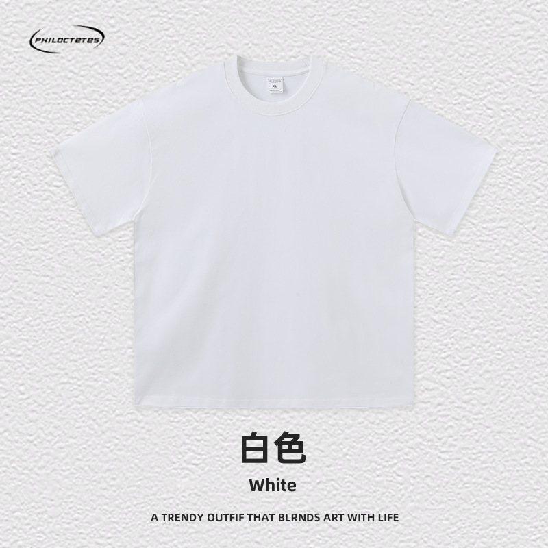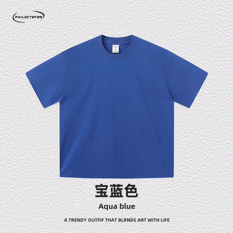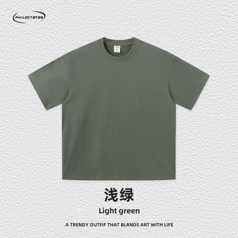 2025 여름 신작 345G 헤비급 티셔츠 남성용 아메리칸 라운드 넥 퓨어 코튼 트렌디 브랜드 하이 스트리트 솔리드 컬러 반팔 커플 티셔츠