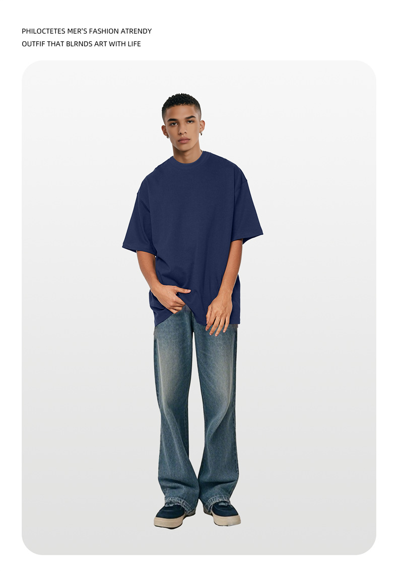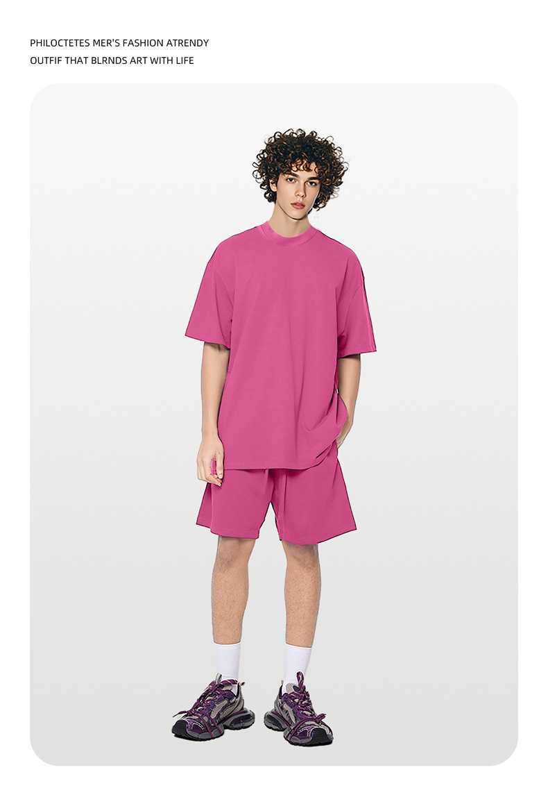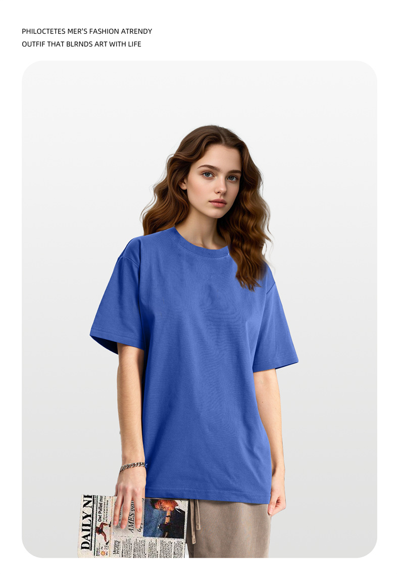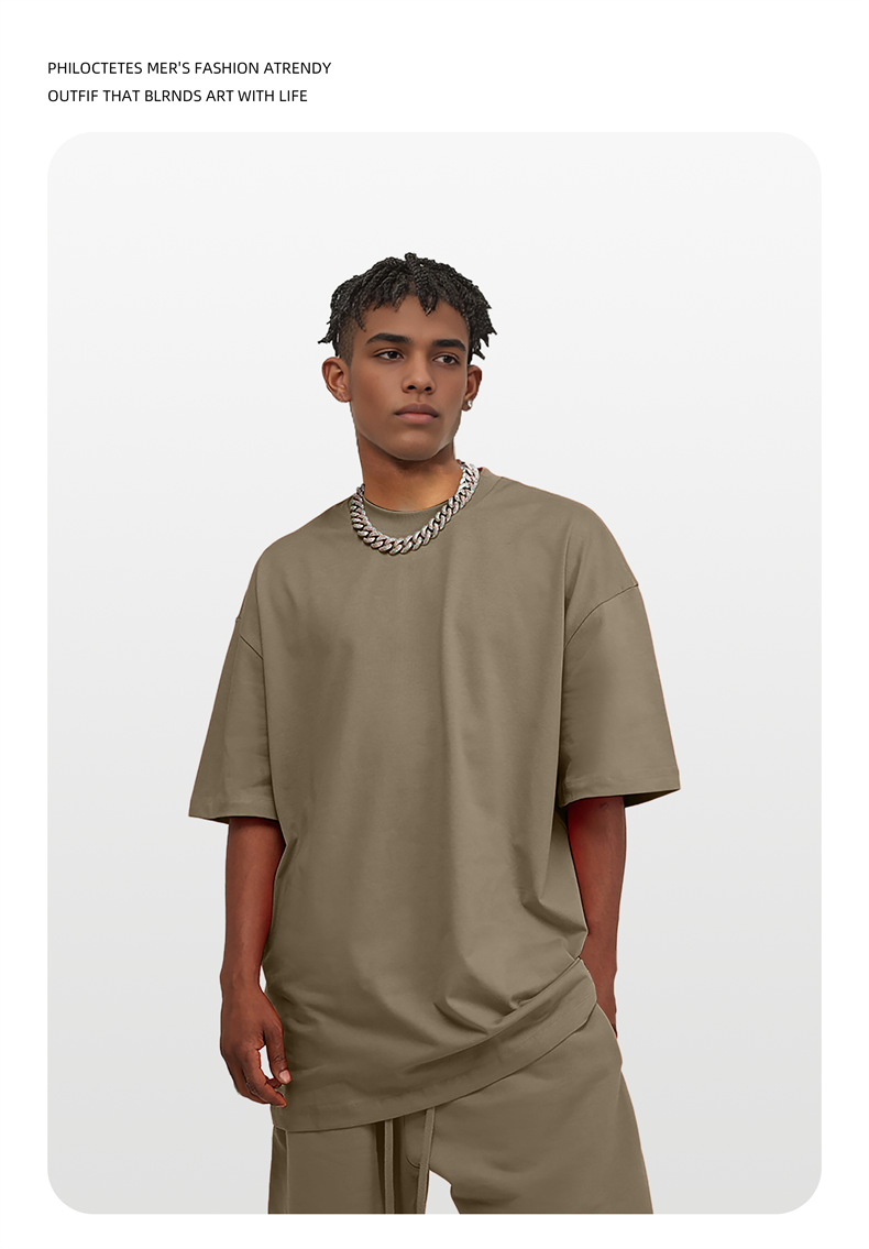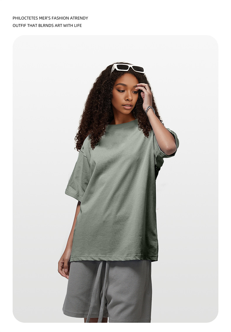 2025 여름 신작 345G 헤비급 티셔츠 남성용 아메리칸 라운드 넥 퓨어 코튼 트렌디 브랜드 하이 스트리트 솔리드 컬러 반팔 커플 티셔츠
