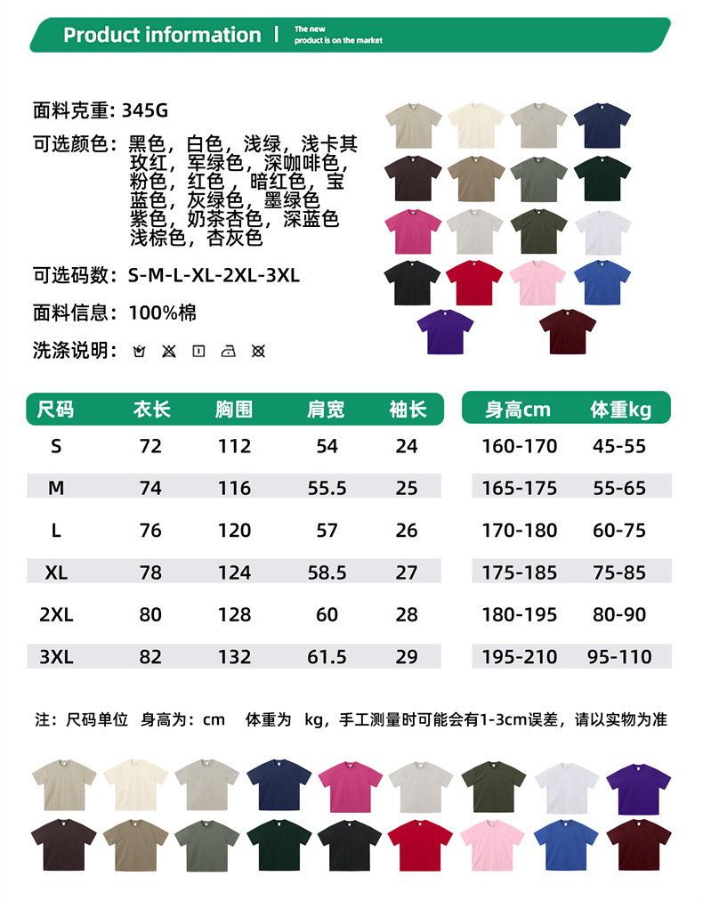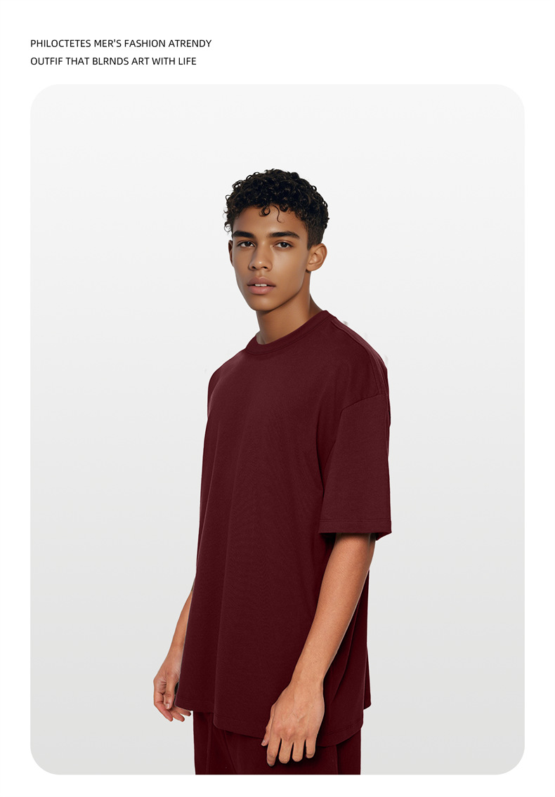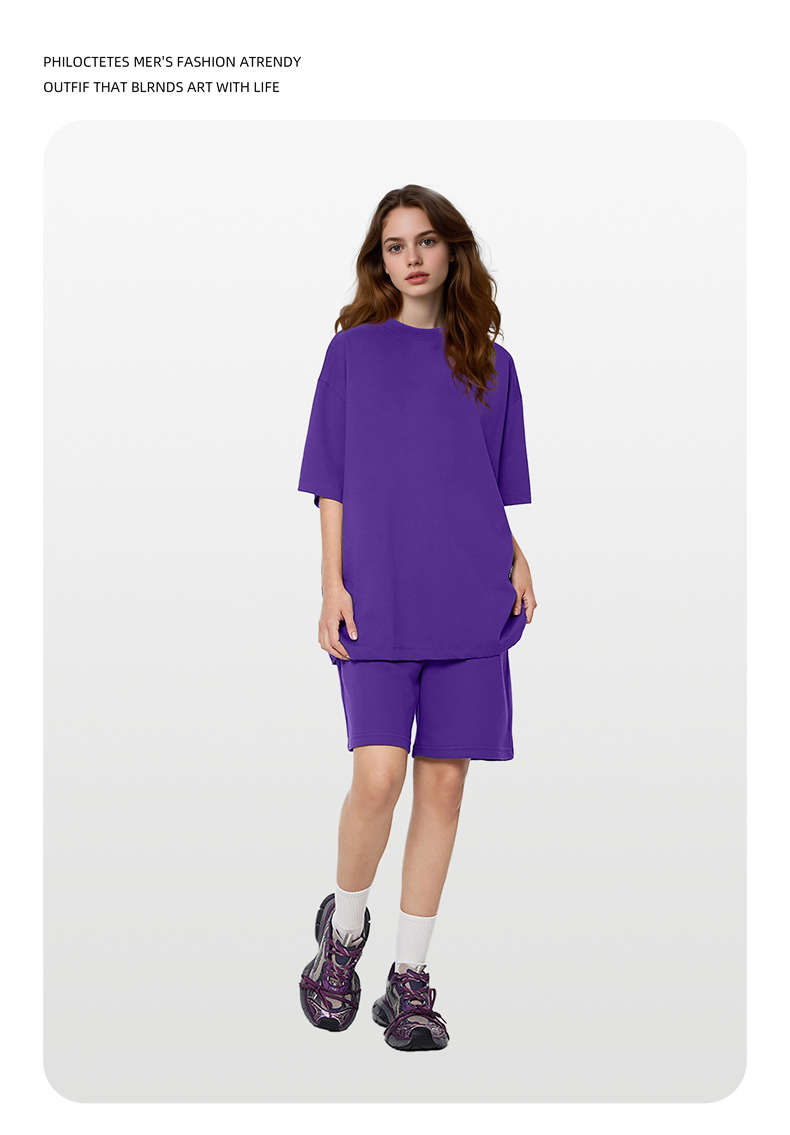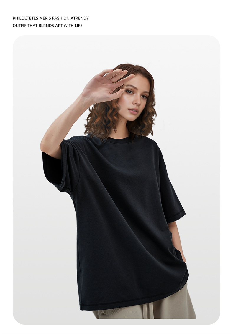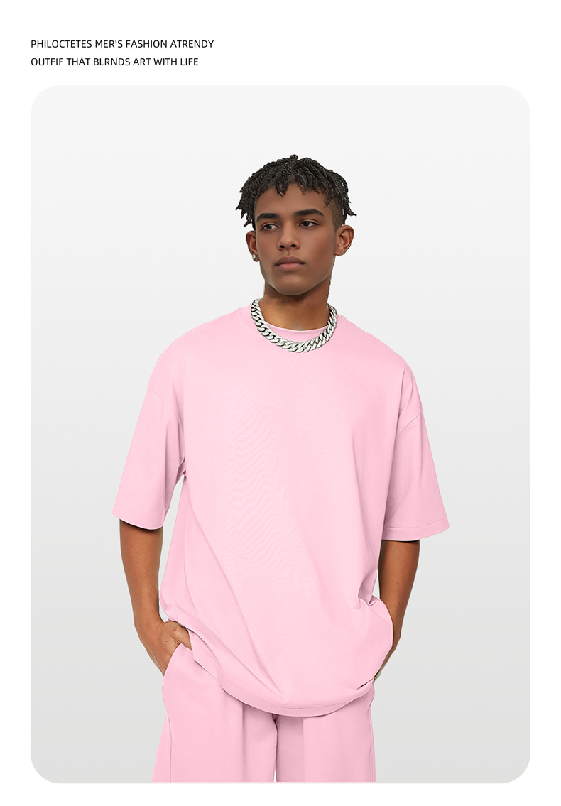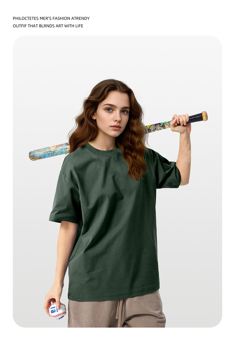 2025 여름 신작 345G 헤비급 티셔츠 남성용 아메리칸 라운드 넥 퓨어 코튼 트렌디 브랜드 하이 스트리트 솔리드 컬러 반팔 커플 티셔츠