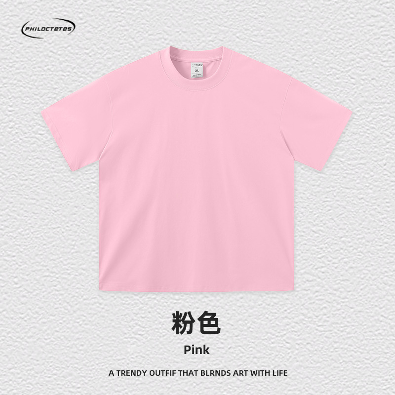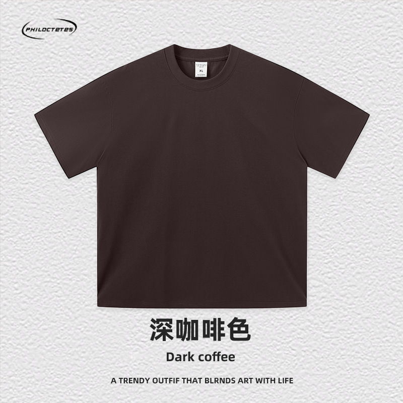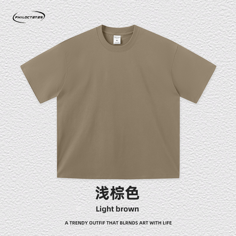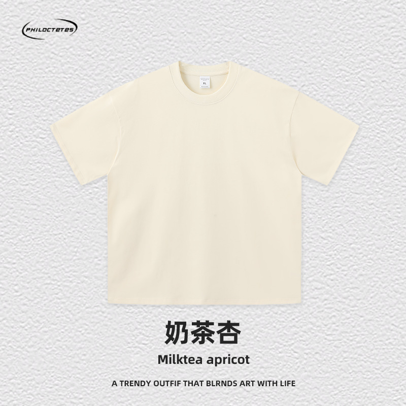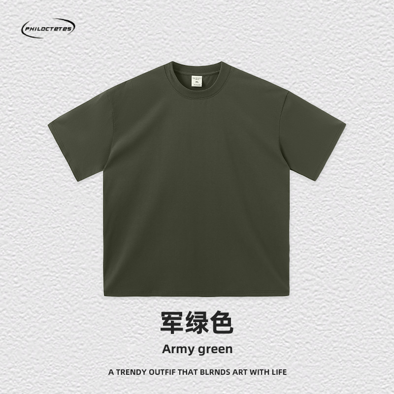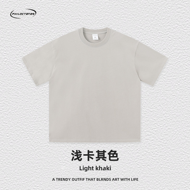 2025 여름 신작 345G 헤비급 티셔츠 남성용 아메리칸 라운드 넥 퓨어 코튼 트렌디 브랜드 하이 스트리트 솔리드 컬러 반팔 커플 티셔츠스토어 가기