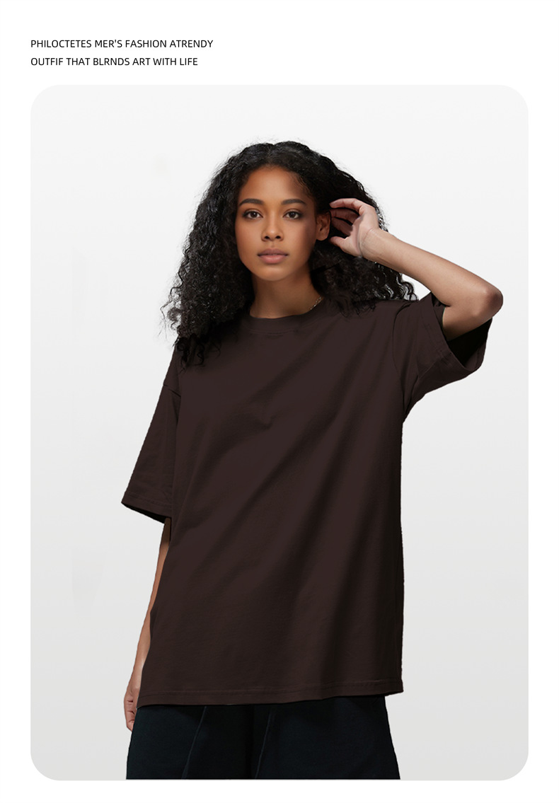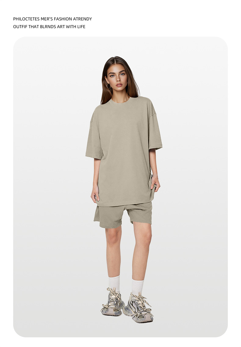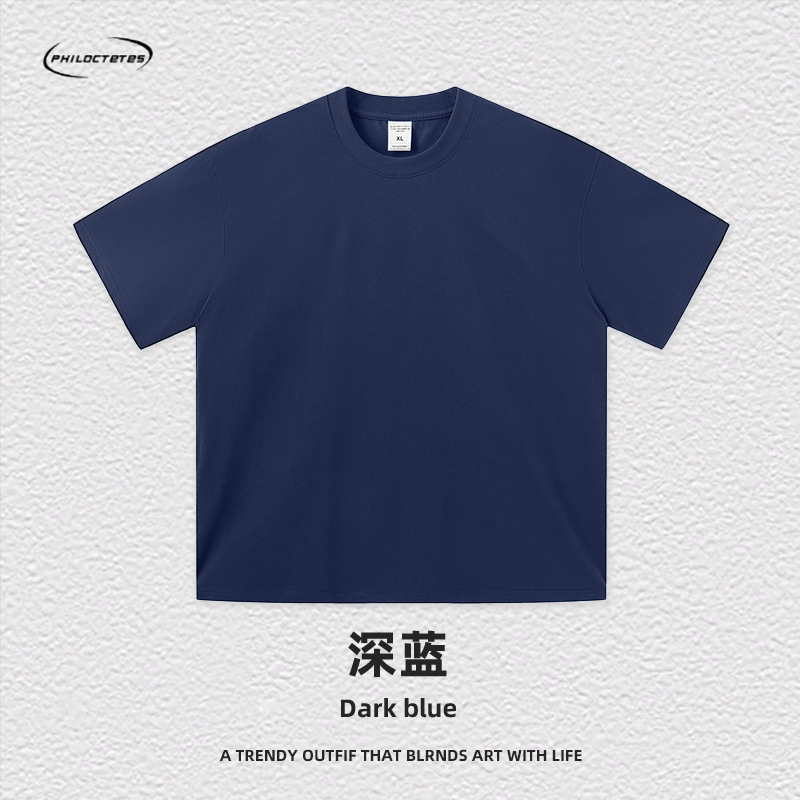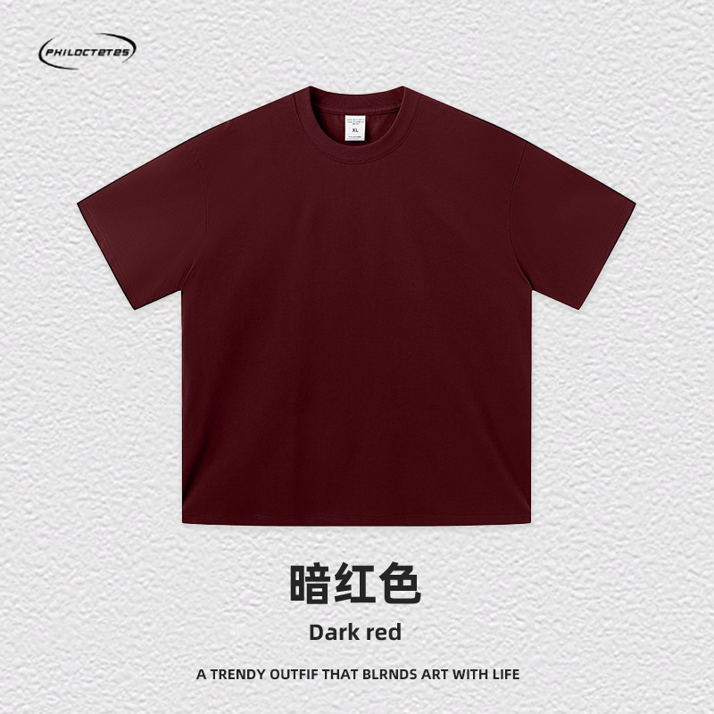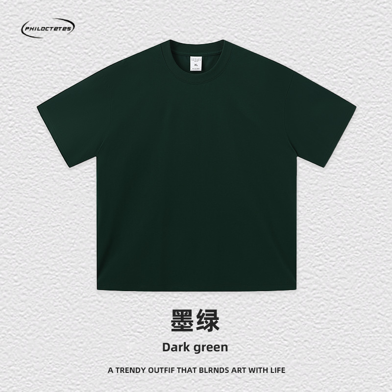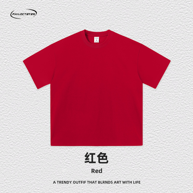 2025 여름 신작 345G 헤비급 티셔츠 남성용 아메리칸 라운드 넥 퓨어 코튼 트렌디 브랜드 하이 스트리트 솔리드 컬러 반팔 커플 티셔츠스토어 가기