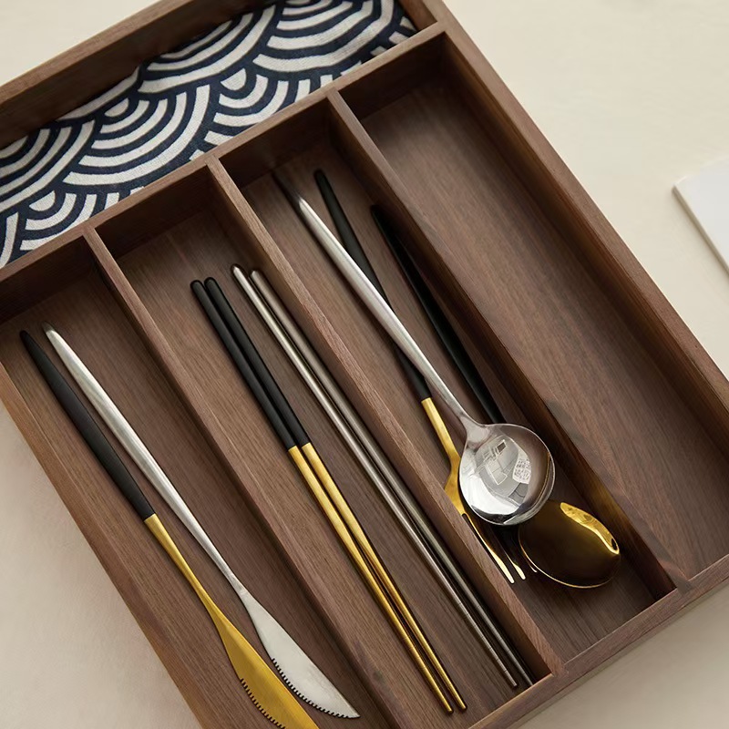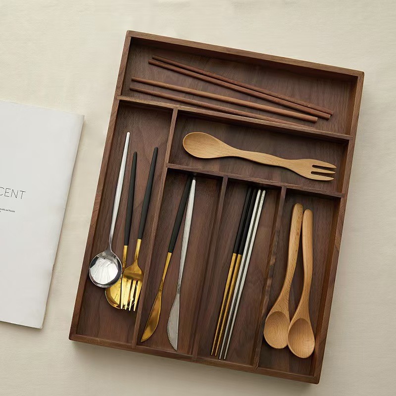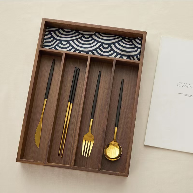고급 검은 호두 식기 칼과 포크 보관 상자 주방 단단한 식기 상자 고급 거실 젓가락과 스푼 보관 상자스토어 가기