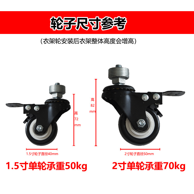 옷걸이 휠 범용 휠 4점 6점 1인치 나사형 캐스터 바닥걸이 레일 수도관 강관 선반 휠 액세서리